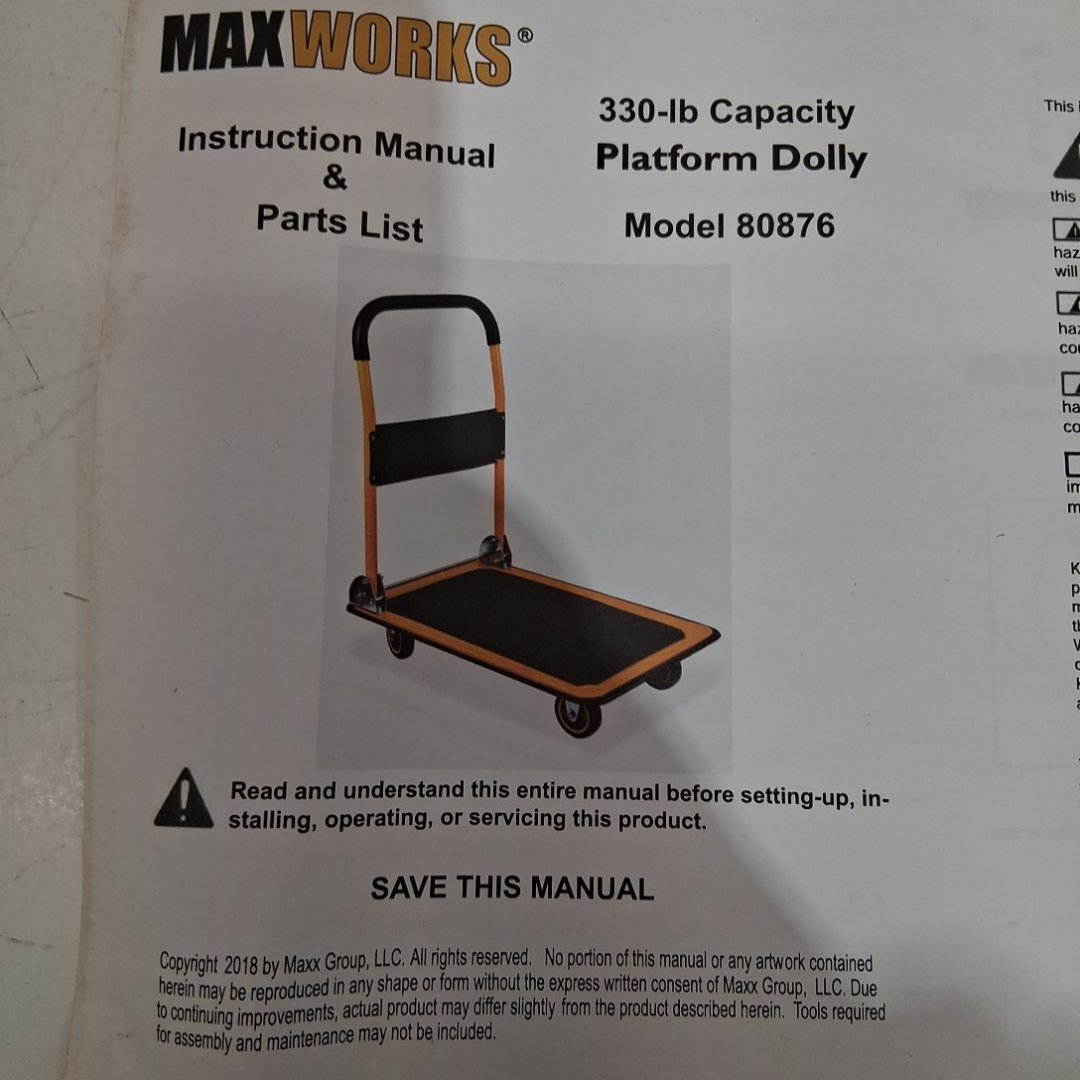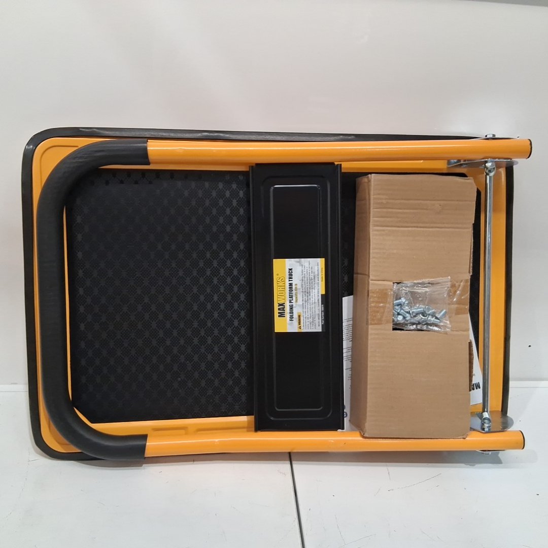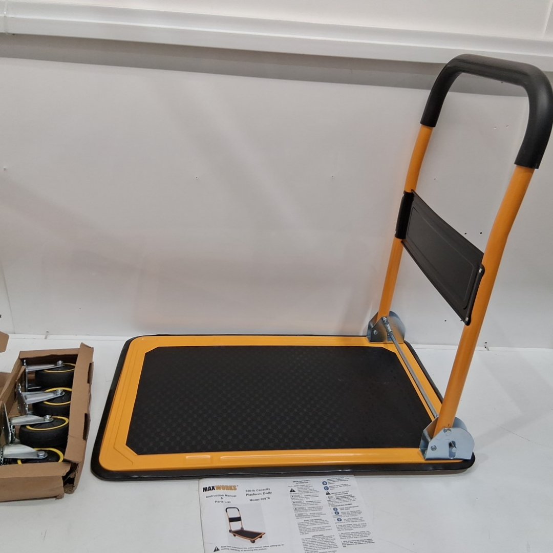 MaxWorks Foldable Platform Truck Push Dolly - 330lb weight cap - 28.7" x 18.7" x 33" - yellow/black (model: 80876)
