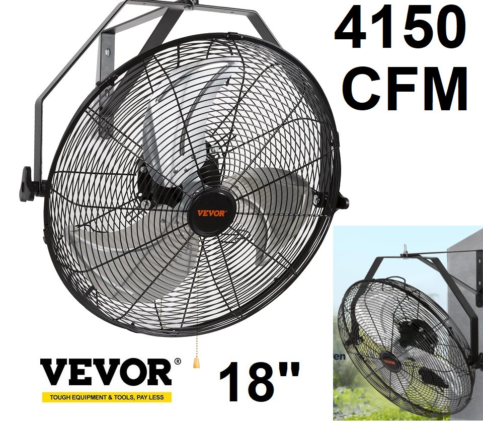 vevor industrial 3-speed tilt-head oscillating metal wall fan - 4150cfm / 18"w - black