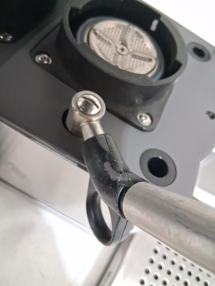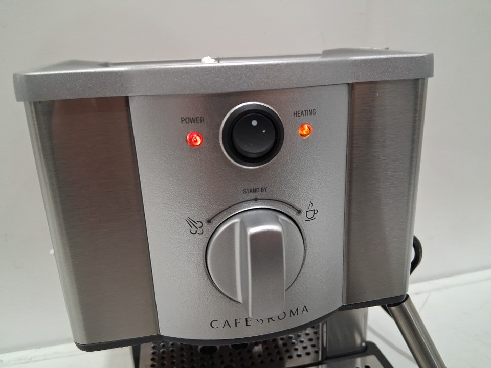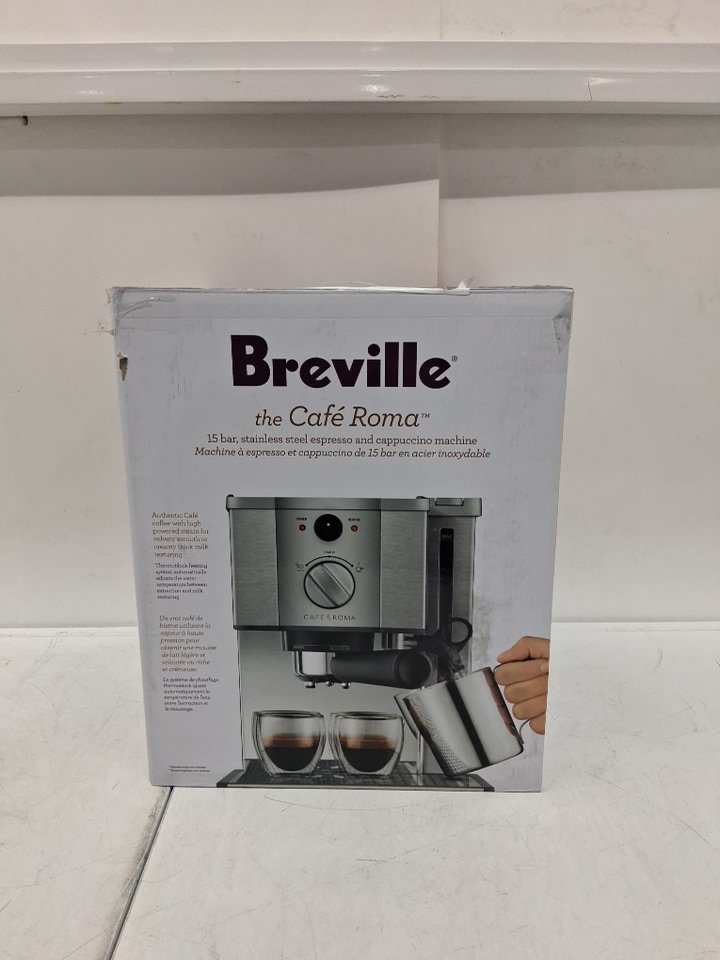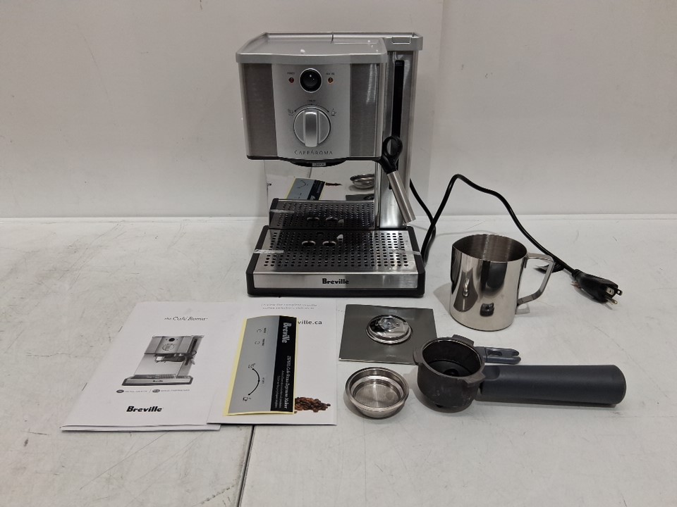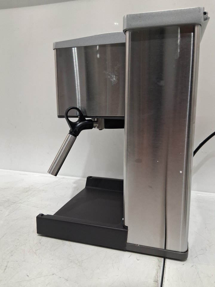 tested for power some scuffs on handle and frothing pitcher Tamping tool. Missing measuring spoon, cleaner tool