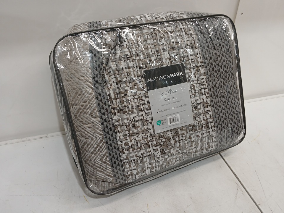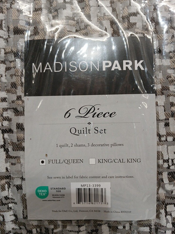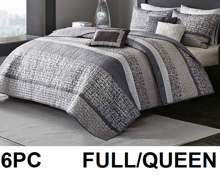 6pc madison park rhapsody reversible jacquard coverlet set - full/queen - chevron grey/taupe (model: mp13-3399)