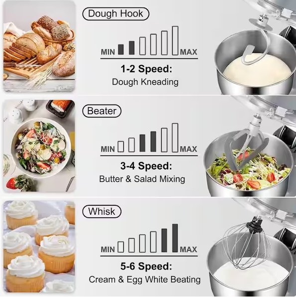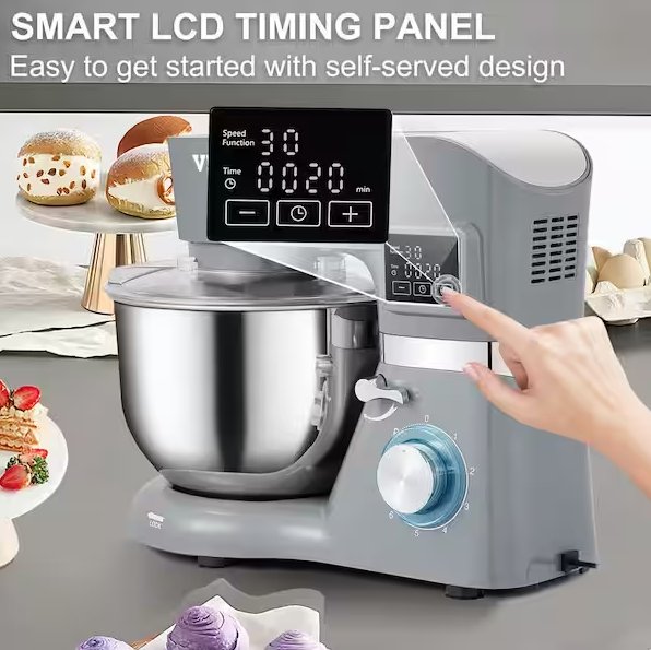 VEVOR Stand Mixer with 6 Speed LCD Screen Timing - 660W - DARK GREY - (MODEL: SM-1503HL)