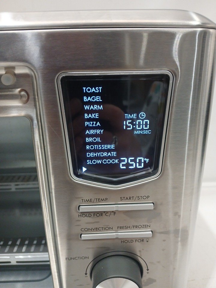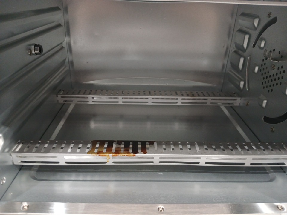 there is food residue present throughout from use. missing all pans/accessories & the handle is broken (appears repairable)