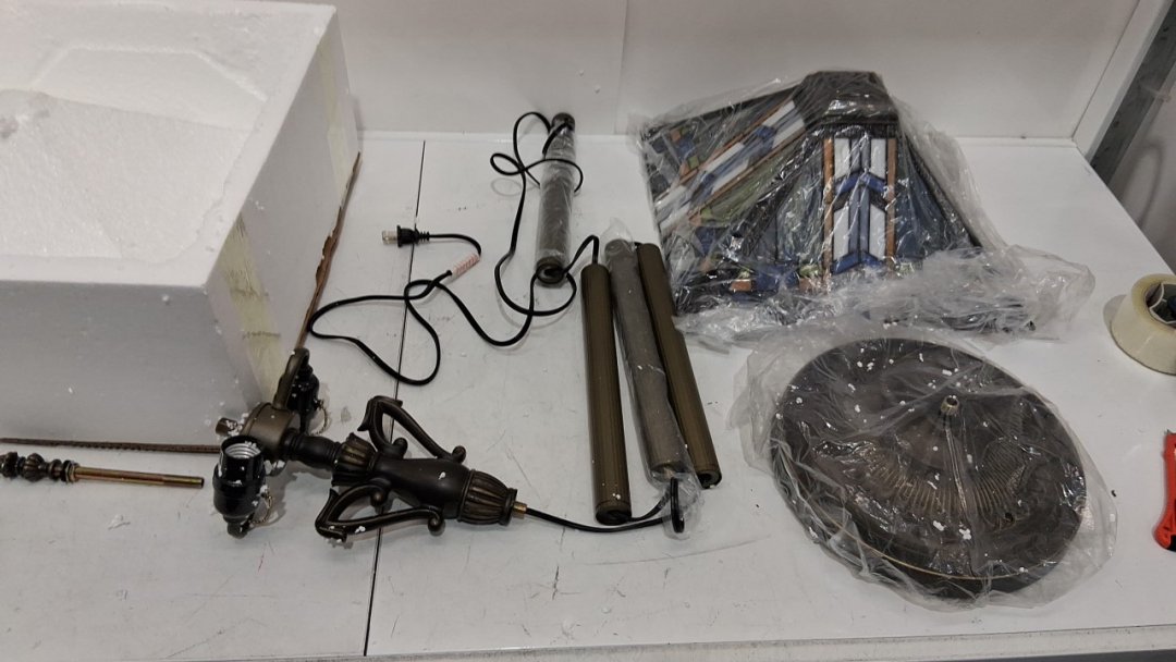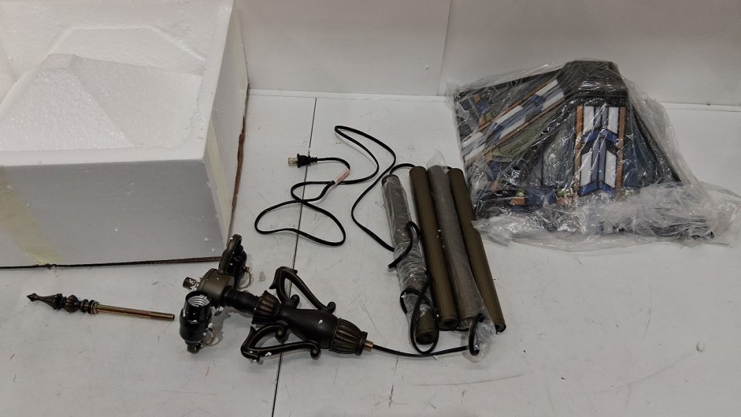 AvivaDirect Tiffany Floor Lamp Mission style stained glass - 16" x 64" - Blue Cloudy/Bronze