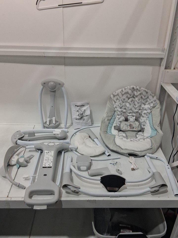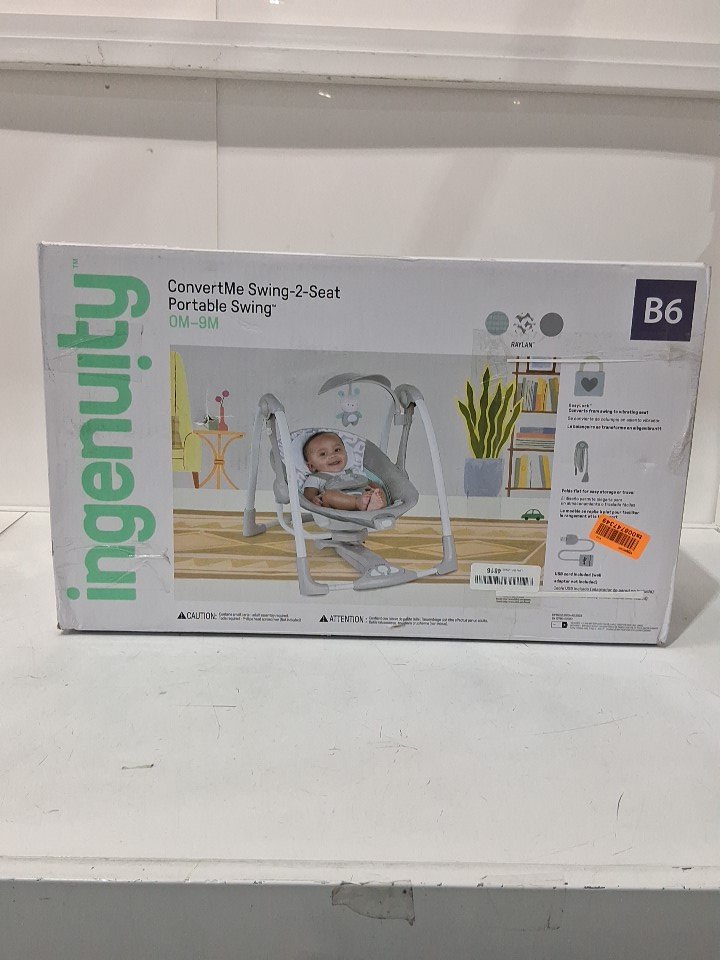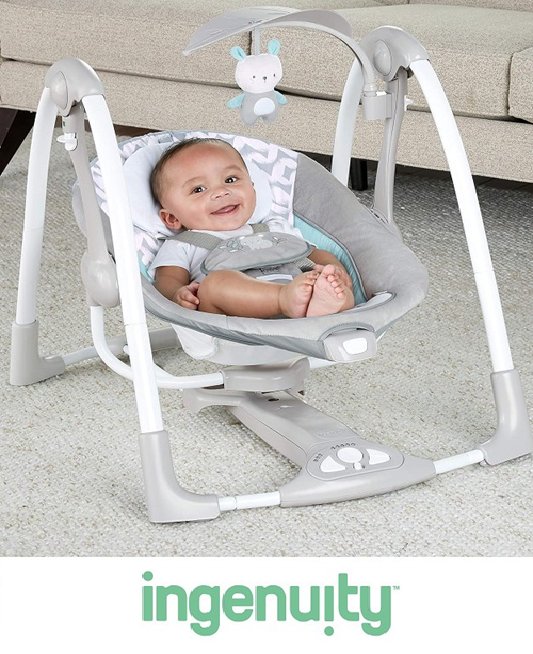 INGENUITY convertme 2-in-1 compact portable plug in automatic baby swing and infant seat - 0 to 9 months - 6lbs to 20lbs - grey - (model: 12189-es)