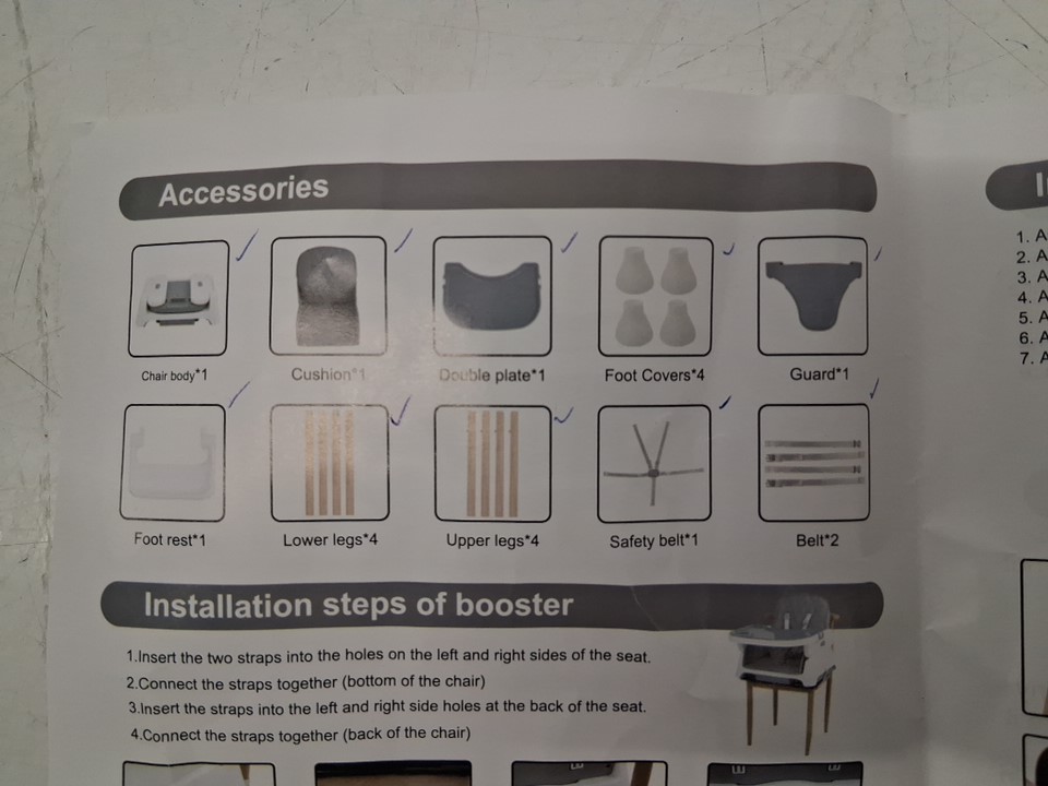 discolouration on straps, some scuffs on feeding tray and some dust on legs from previous use, see photos