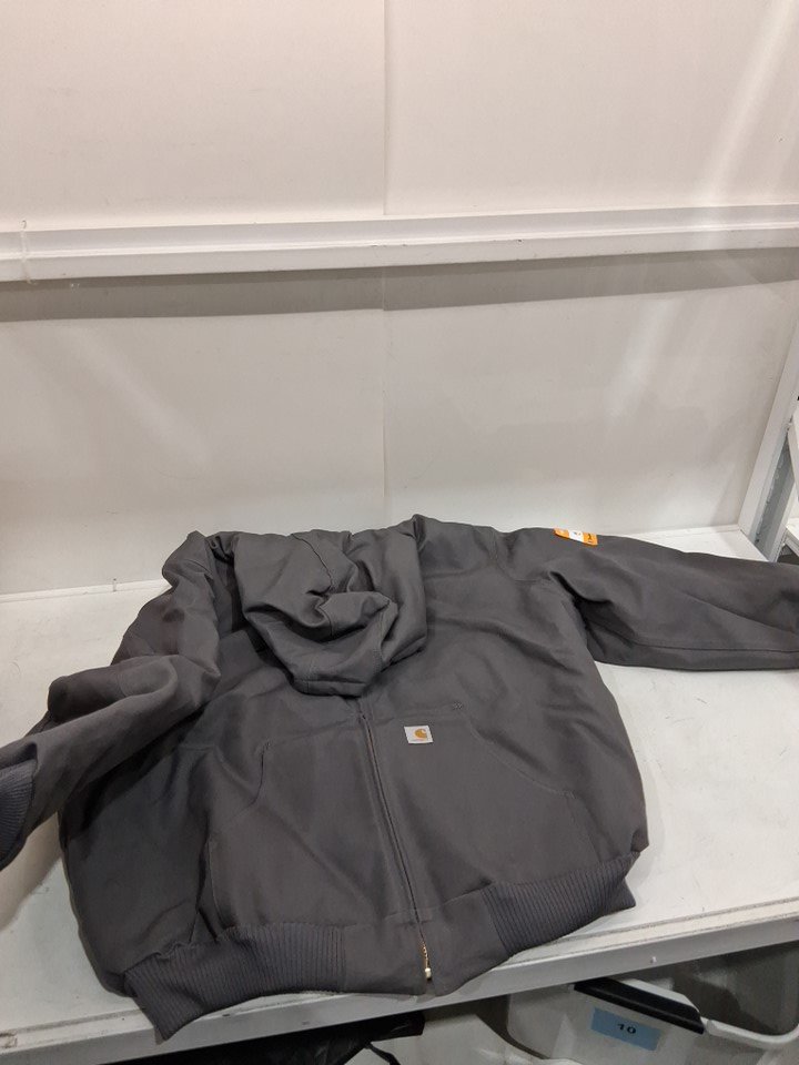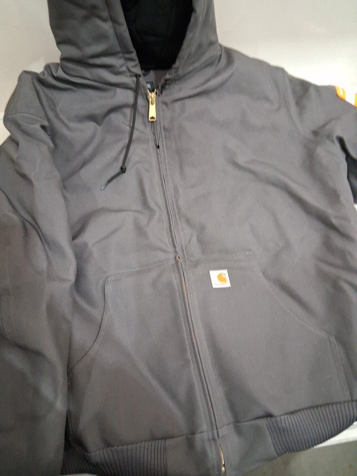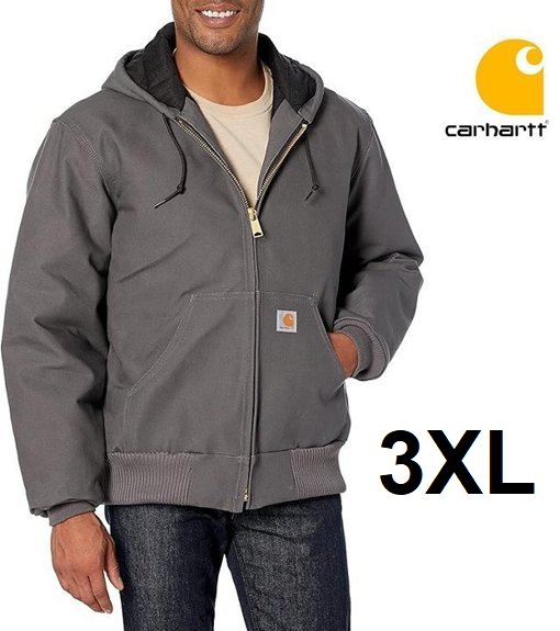 men's carhartt loose fit firm duck insulated flannel lined hooded active jacket - Small - Grey (style: 0j0140-M)