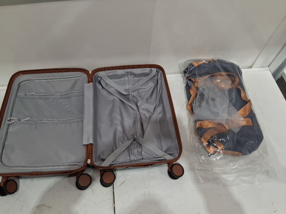 3PC SHOWKOO Carry On Luggage Hardshell Lightweight Luggage Set- 20" - navy/brown