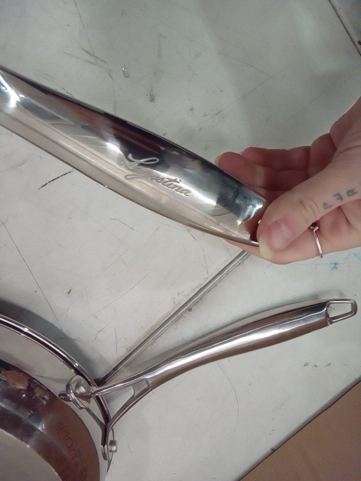 there is slight staining\grease on the pans indicating previous use. see photos please.