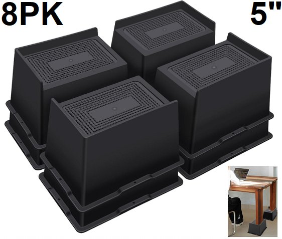 8PK ANNKUT FURNITURE RISERS - 6000 lbs support - 5" - black