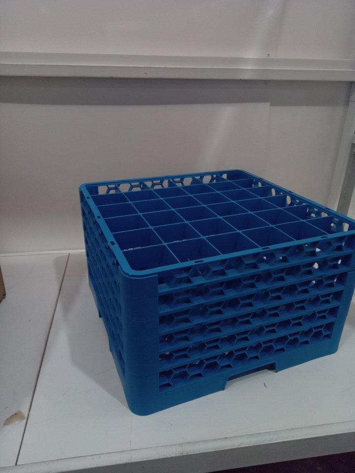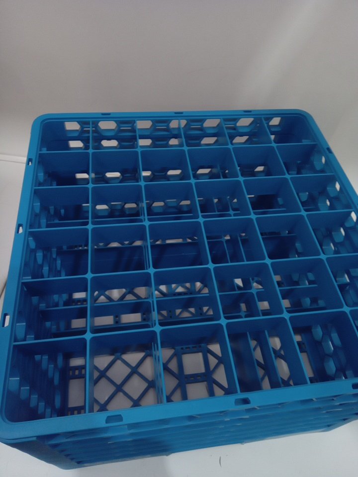 Carlisle Food Service Products Opticlean 16 Compartment Glass Rack with 3 Extenders for Restaurant Kitchens - 20" x 20" x 8.5" - CARLISLE BLUE