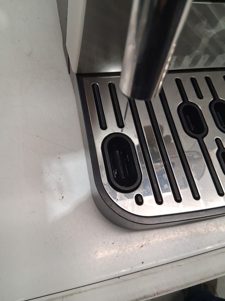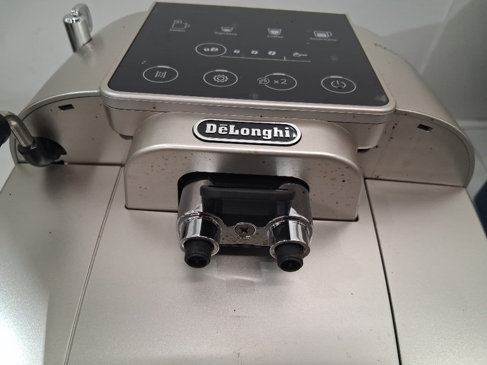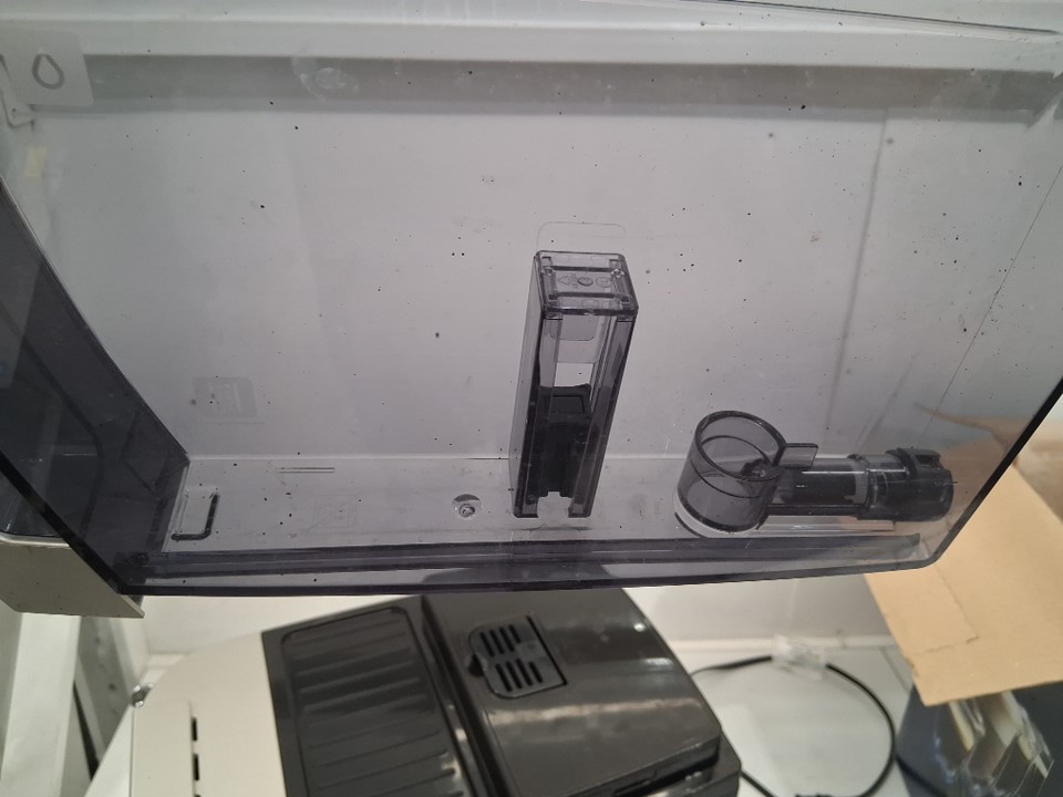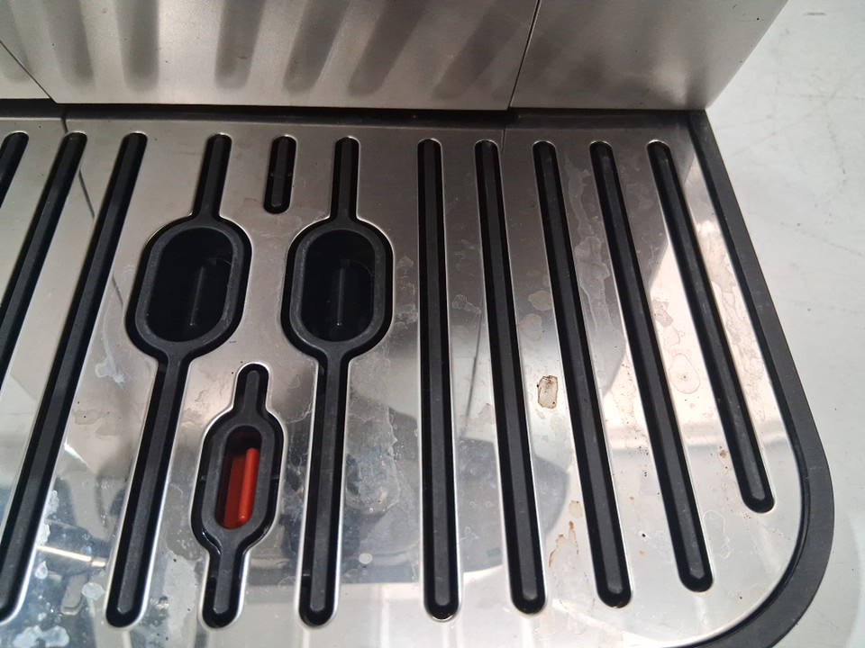 There are some coffee grounds and light liquid stains in a variety of places on the machine indicating previous use, but otherwise appears to be in good condition and function normally - see photos.
