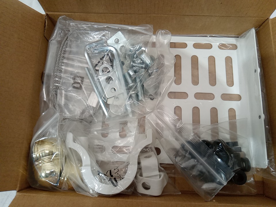 Please note that this product has been partially assembled previously. There are installation and minor scratch marks on the poles. May require additional generic hardware to install the product. (Please see photos)