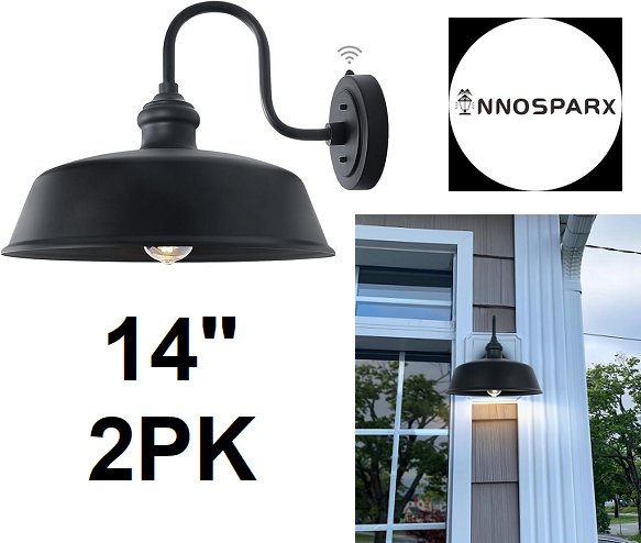 2PK INNOSPARX DUSK TO DAWN OUTDOOR GOOSENECK FARMHOUSE STYLE LIGHT FIXTURE - 14" - BLACK (model: pfms2231-xl-2p)