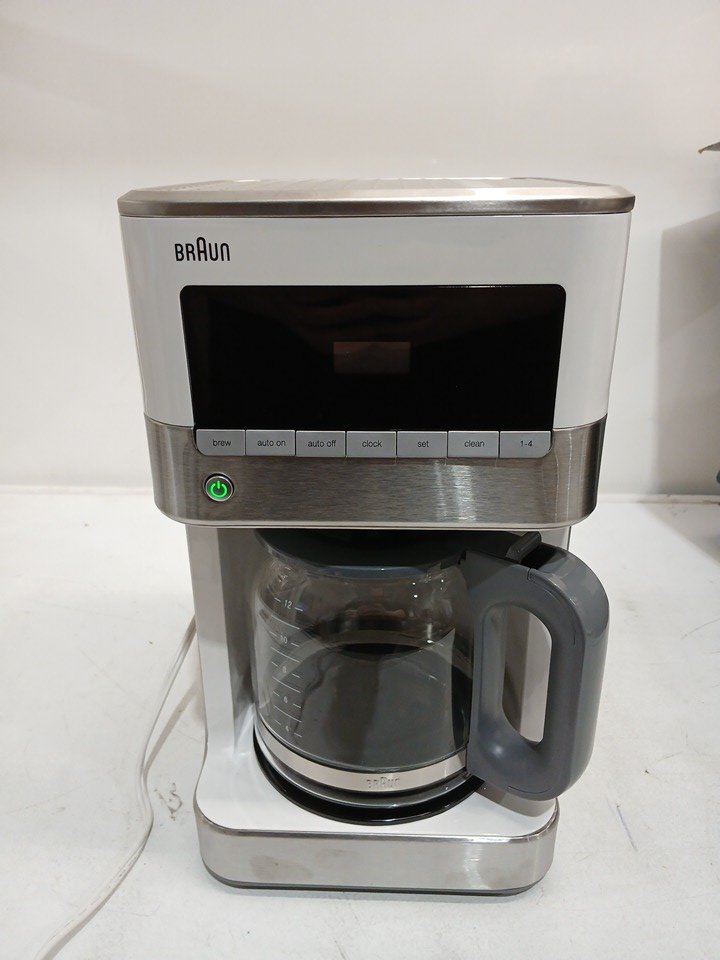 the unit has been tested for power and has some coffee residue in and around the machine from previous use.