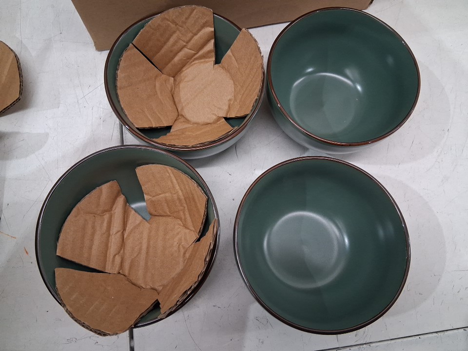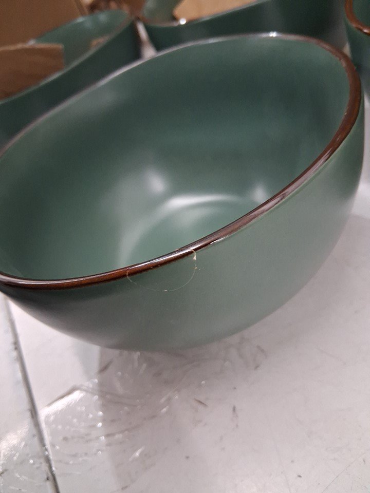ONE OF THE BOWLS HAS AS SMALL CHIP IN IT, CAN BE FIXED. THE REST OF THE PACKAGES ARE RETAIL SEALED.