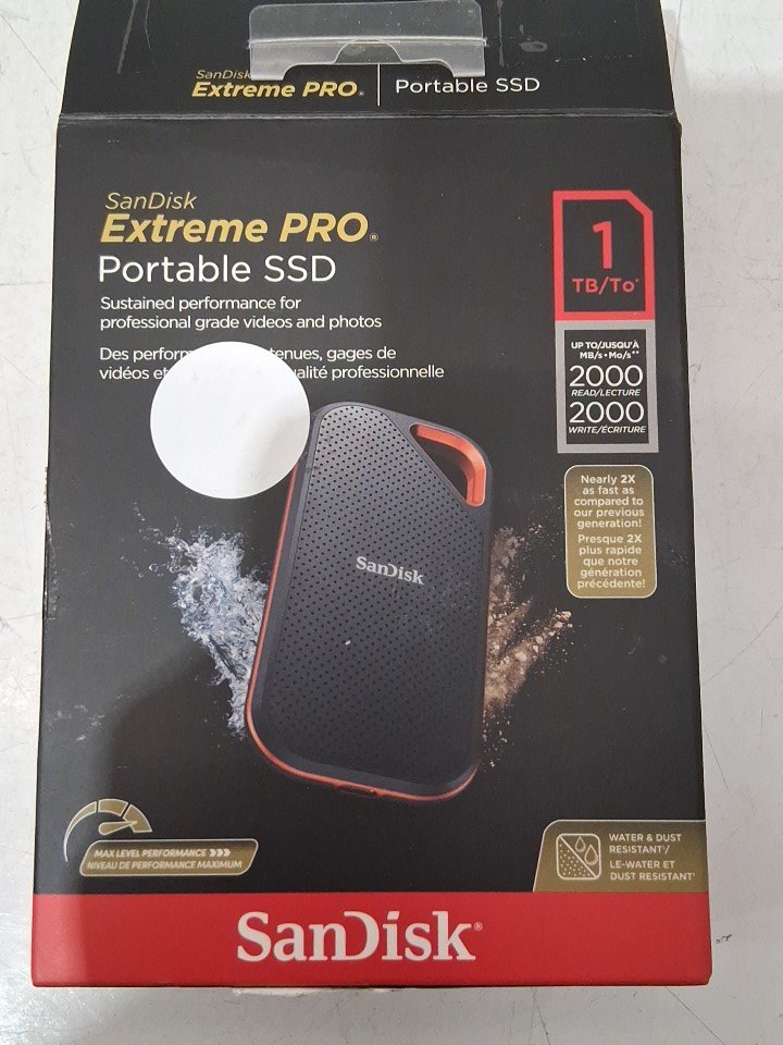 SanDisk 1TB Extreme PRO Portable SSD - Up to 2000MB/s read/write, USB-C (model: sdssde81-1t00-g25)