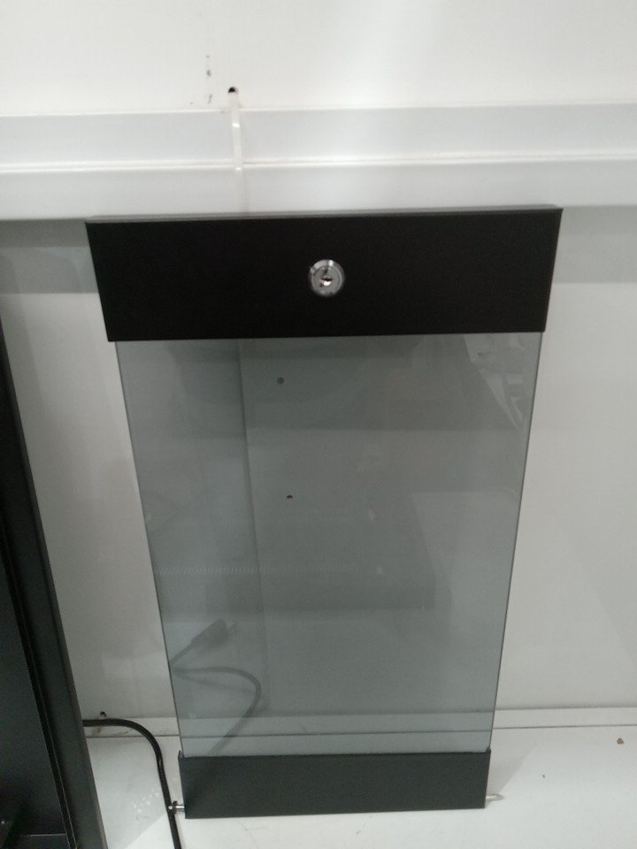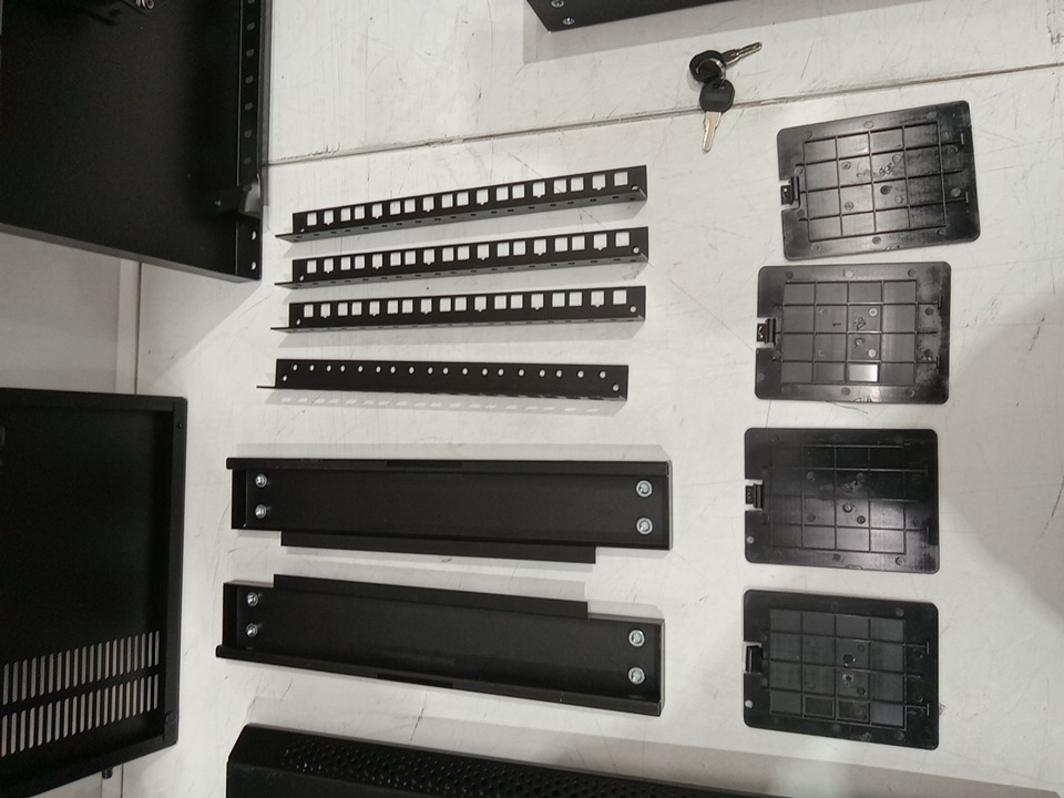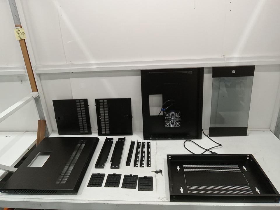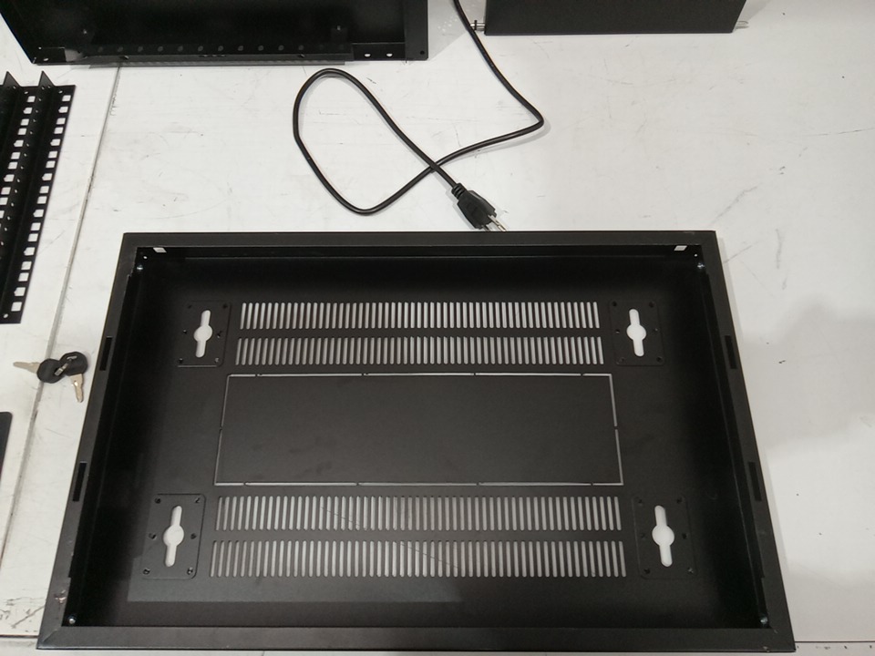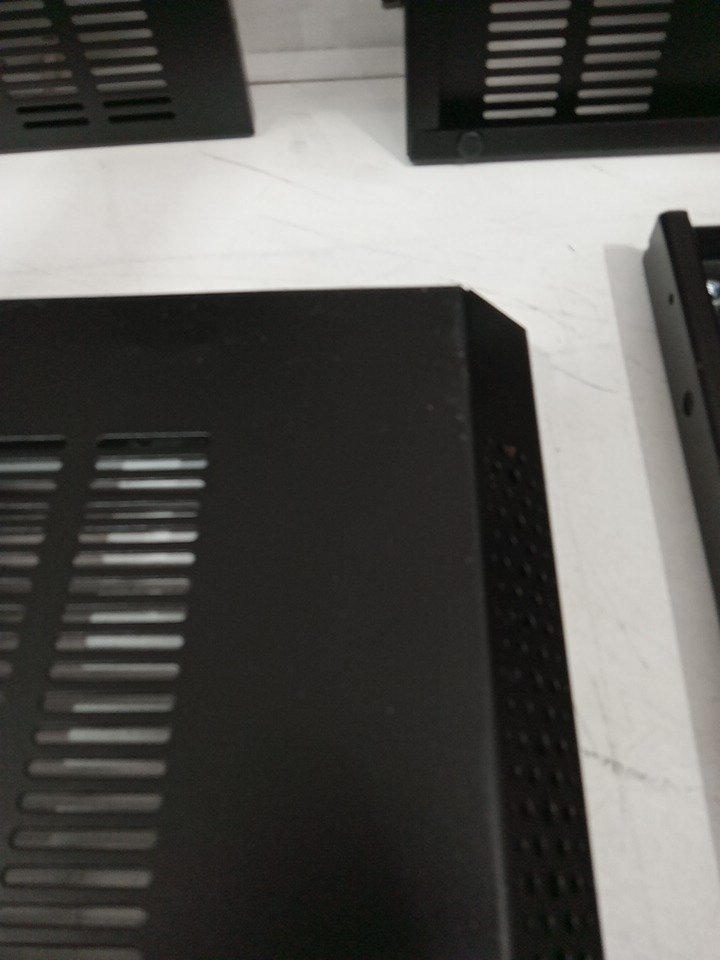 Please note that the top panel’s inner edges have dents, and the frame’s inner edges need to be bent back in order to place the panel on top. The fan does not spin and will need to be replaced for proper functioning. All generic hardware is missing from the original packaging and will be required to install the product. There are also scratch marks around the frame. (Please see photos)