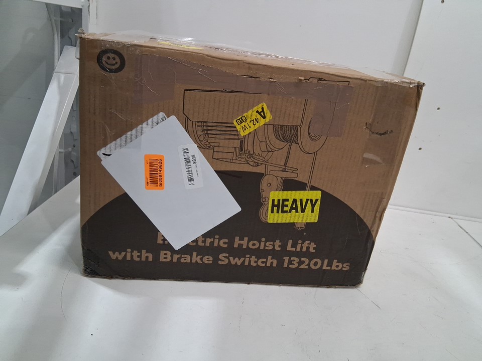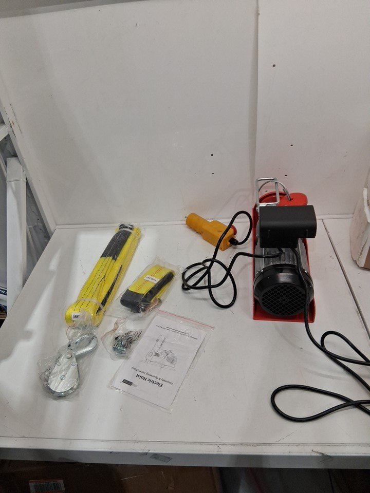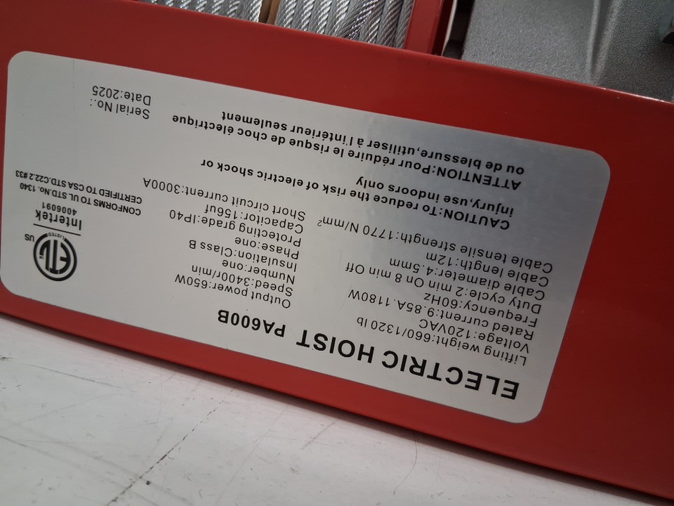 BLUELINE ELECTRIC OVERHEAD LIFTING HOIST SYSTEM, PULLEY WINCH - 1320LBS Capacity- RED (MODEL: PA600B)