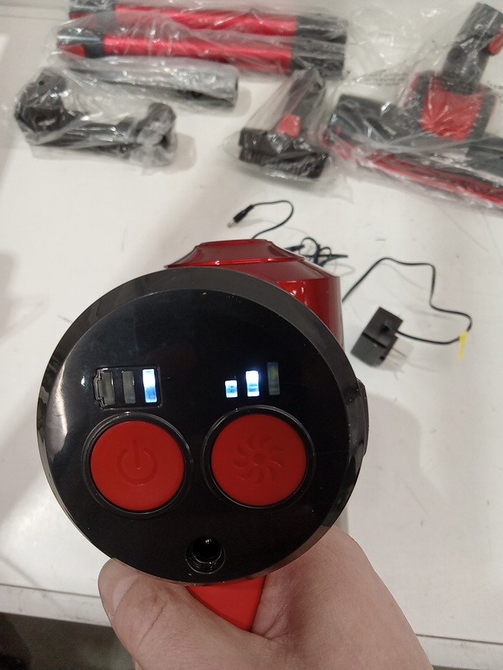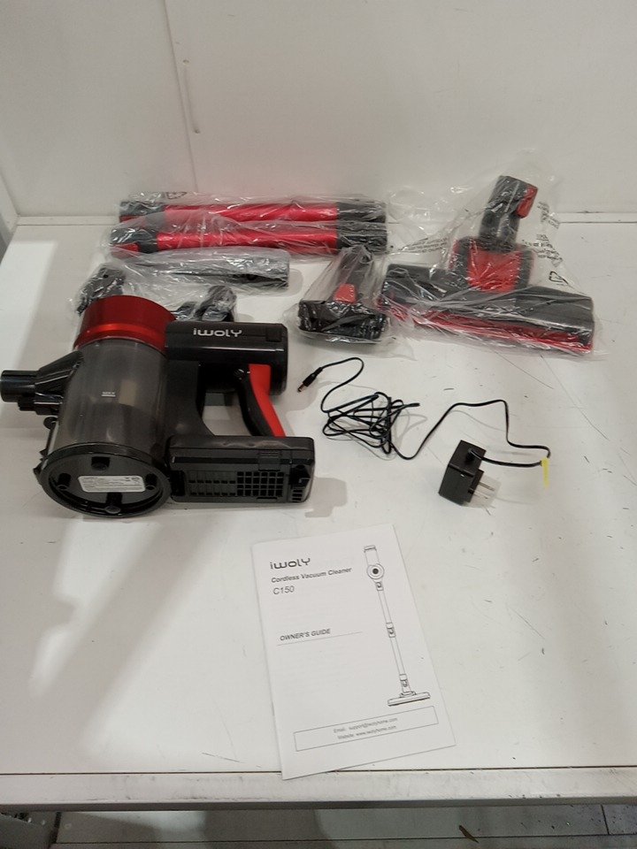 IWOLY CORDLESS 2-IN-1 VACUUM CLEANER KIT WITH TOOLS/ACCESSORIES - 2200MAH BATTERY - 18KPA - RED/BLACK (MODEL: C150)