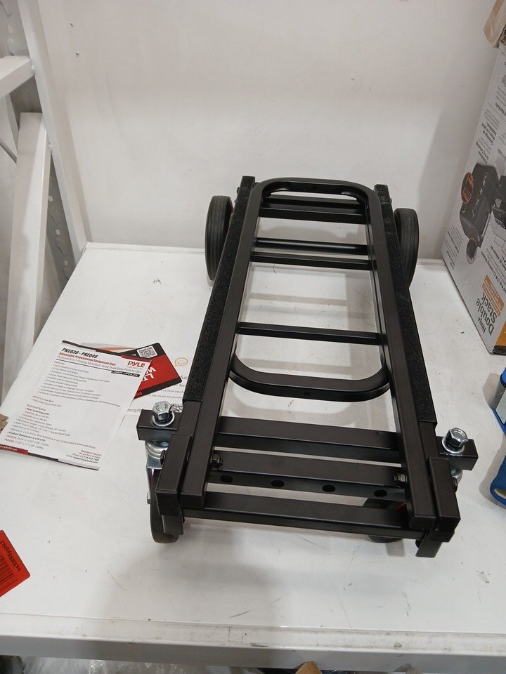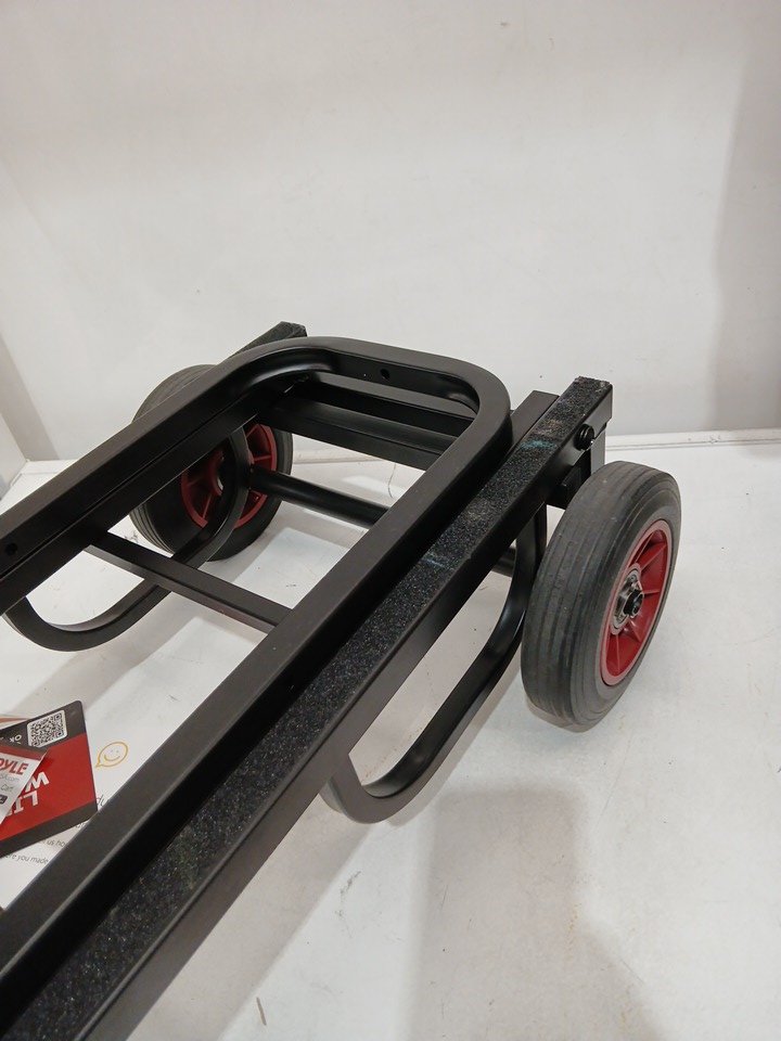 pyle 8-in-1 compact and portable folding hand truck dolley cart with heavy duty steel frame and adjustable height - 200lb capacity - 25.24" - 40.24" - black/red - (model: pkeq38)
