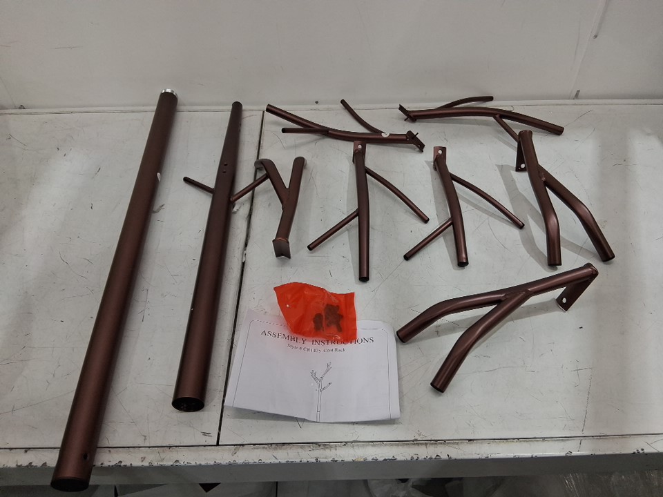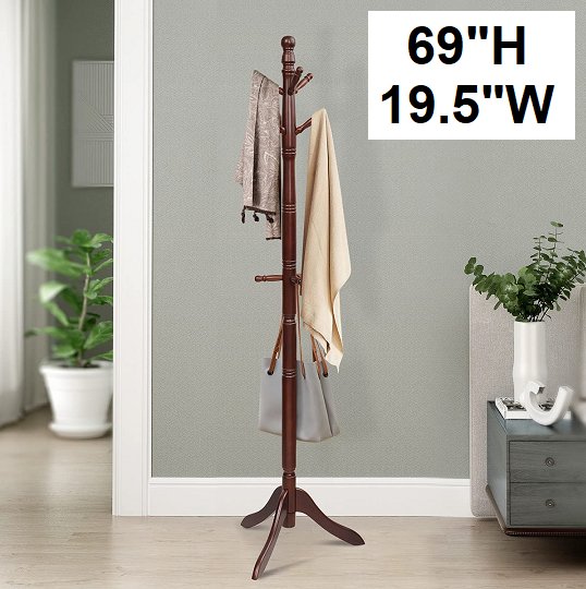 COAT RACK TREE - ENTRYWAY FREESTANDING COAT HANGER WITH 9 HOOKS, STABLE TRI-LEGGED BASE - ADJUSTABLE HEIGHT - BROWN