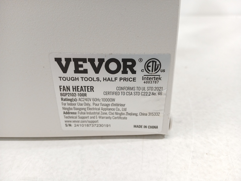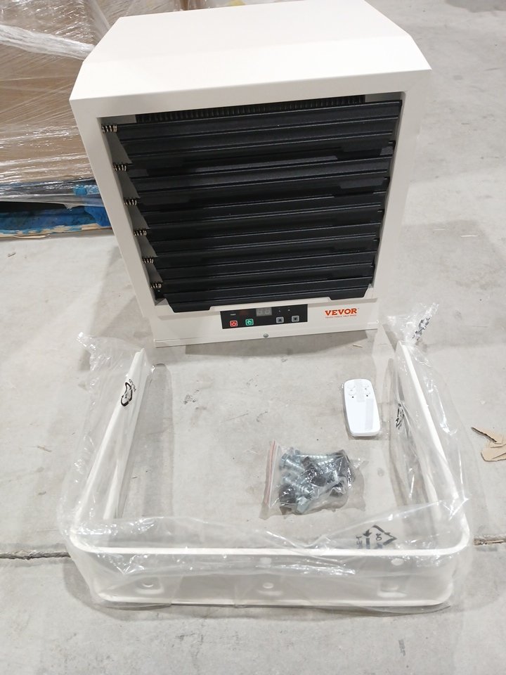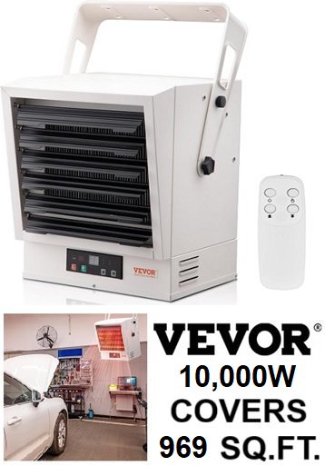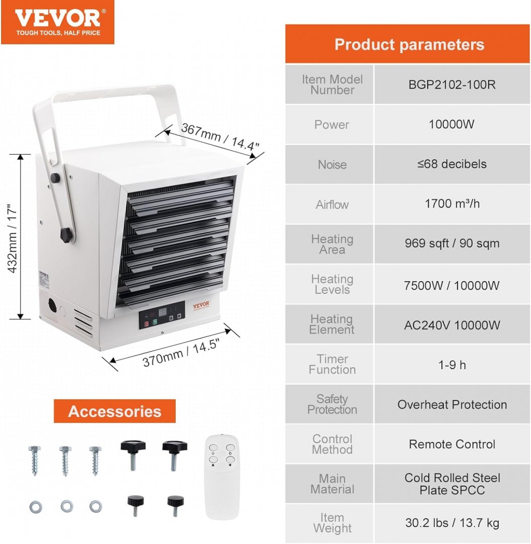 VEVOR Electric Fan Forced Mountable Garage Shop Heater with Remote Control, Overheat Protection and 9-Hour Timer - 10,000W - COVERS 969 SQ.FT - WHITE (MODEL: BGP2102-100R)