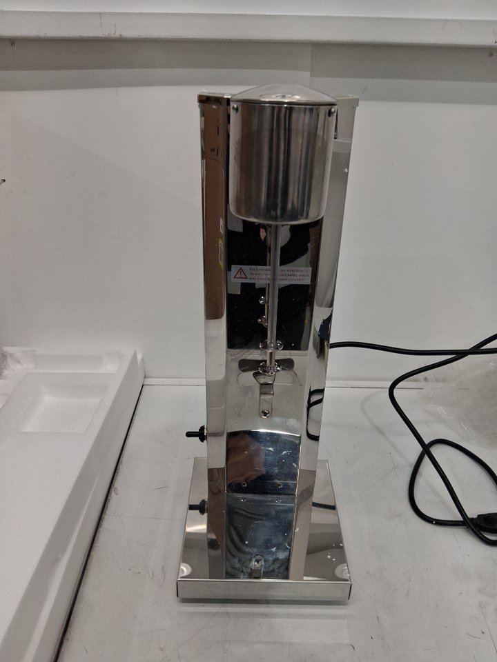 Cup is missing. There is some residue on plate behind mixer piece. Has been tested for power (no indicator light)