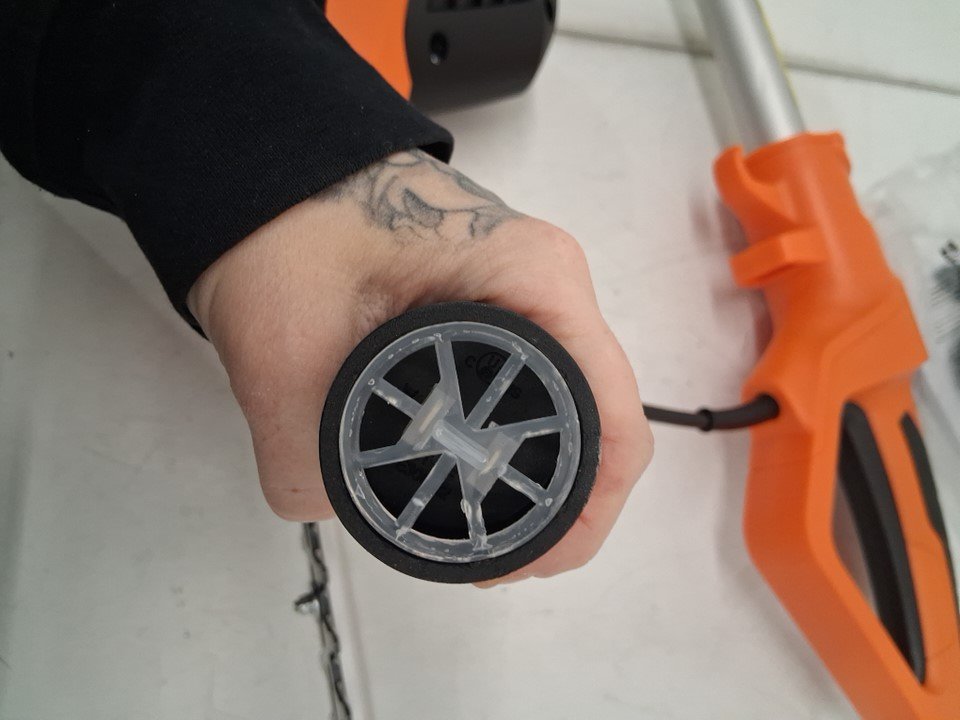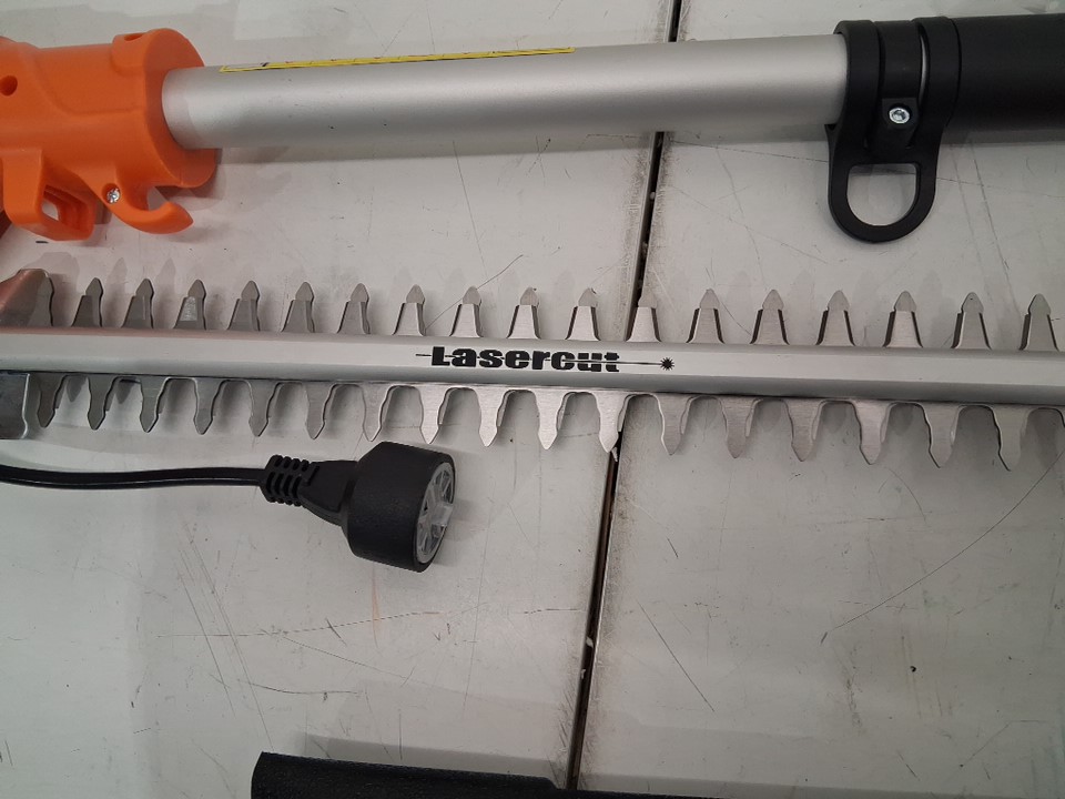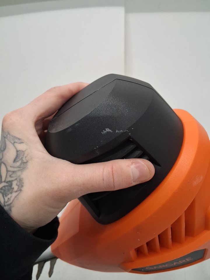 pole saw has some light scuffing on pole attachment by handle and white scuff marks on saw motor casing