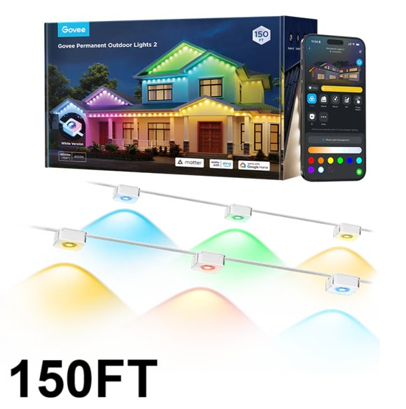 GOVEE PERMANENT OUTDOOR LIGHTS 2 COMPATIBLE WITH ALEXA AND GOOGLE HOME - 4000K - 150FT - WHITE (MODEL: H705F)