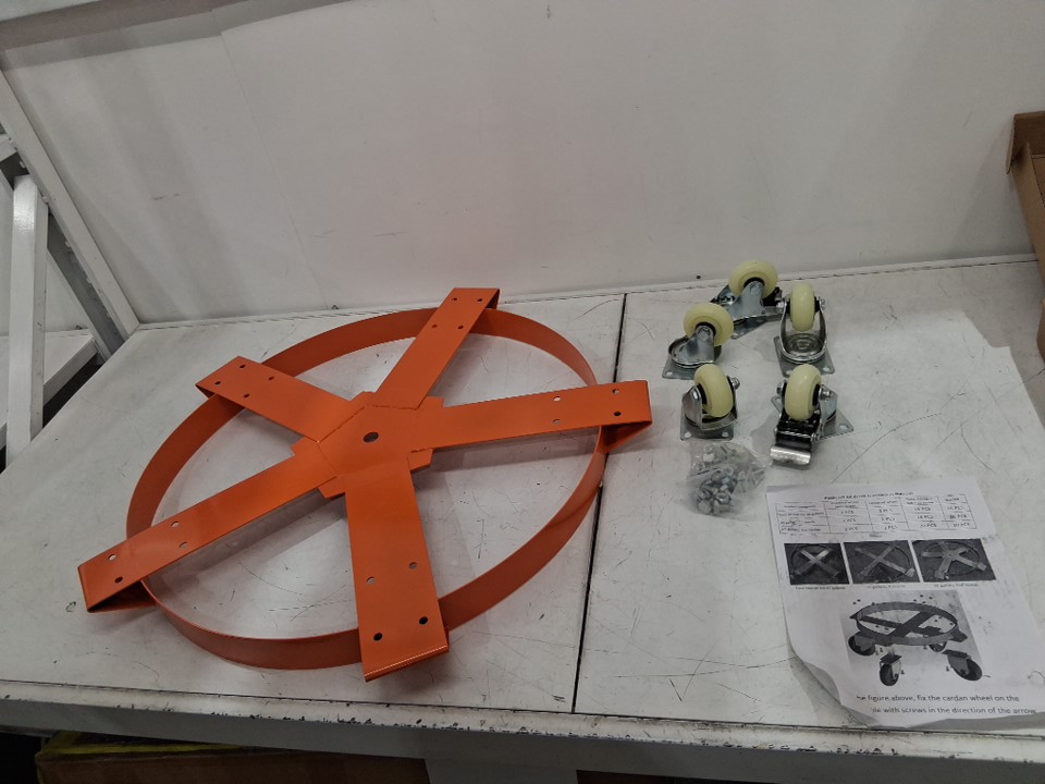 EcoExplorer steel frame 5-wheel drum dolly with brakes - 1250LB CAP - Orange