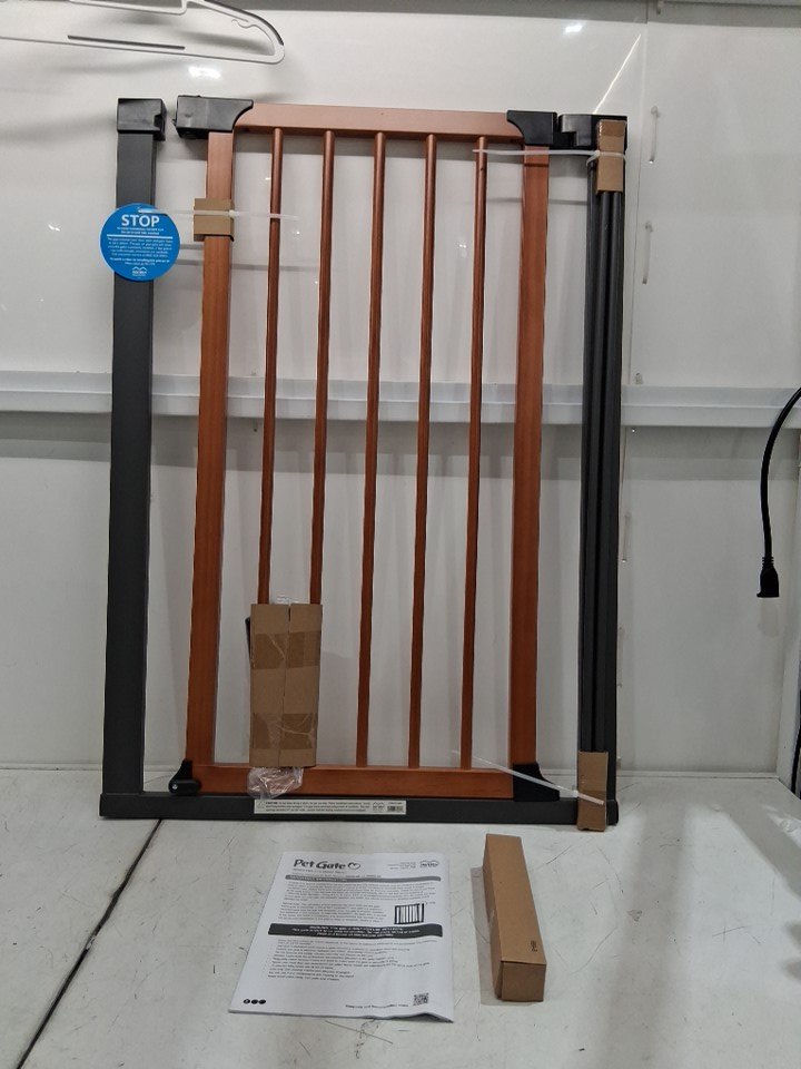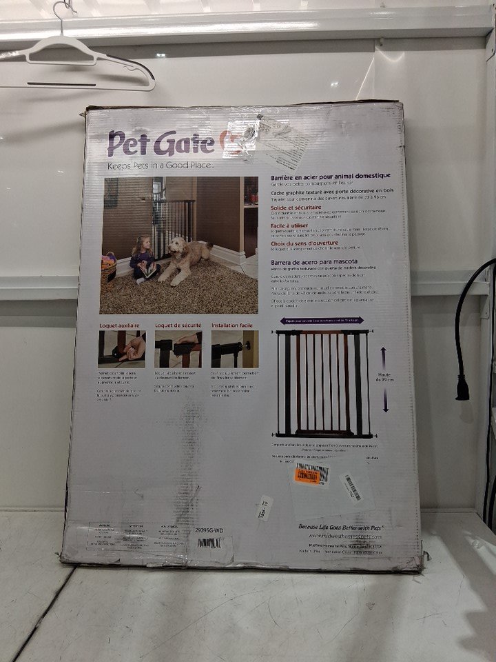MIDWEST HOMES FOR PETS 29" STEEL PET GATE WITH TEXTURED GRAPHITE FRAME - ADJUSTABLE FROM 29" TO 38" - BLACK (MODEL: 2929SG)