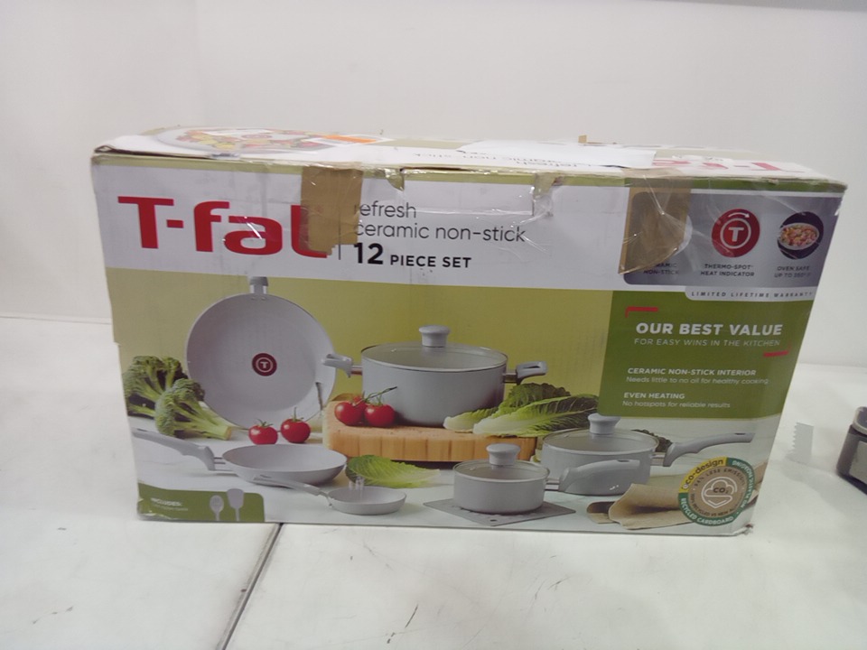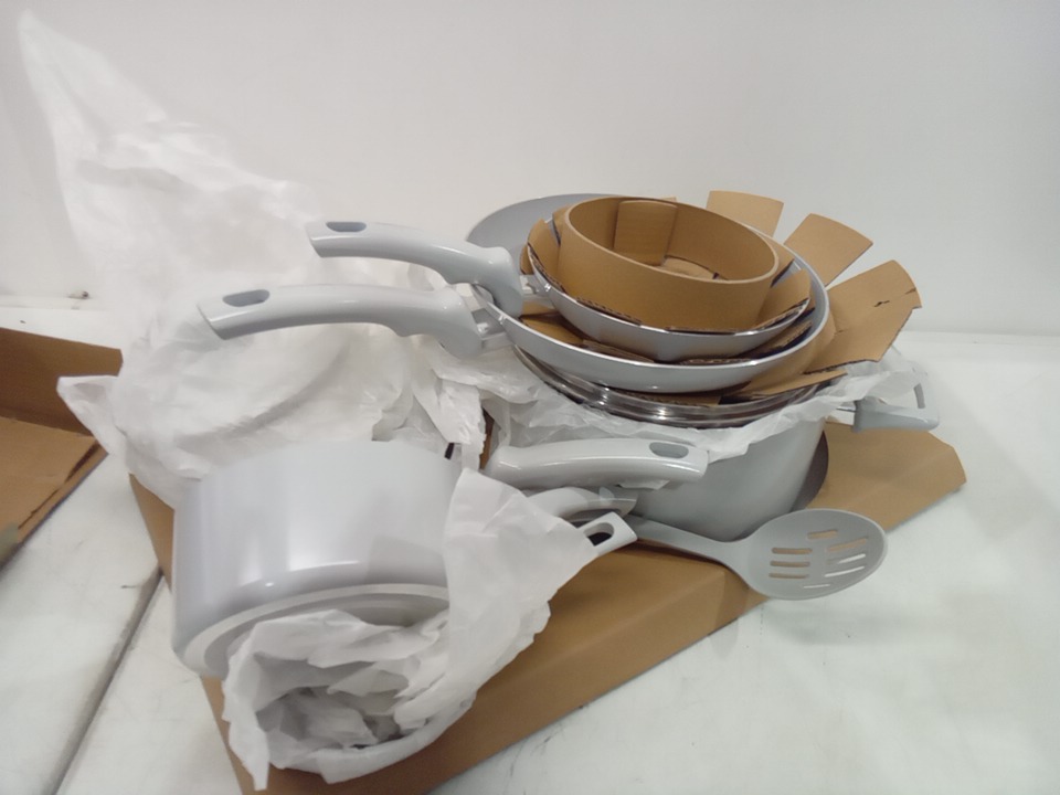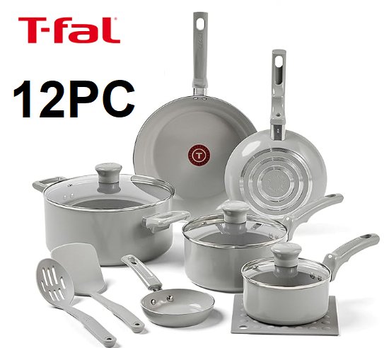 12pc T-FAL Refresh Ceramic Nonstick Cookware Set - moon grey - (MODEL:C486SC64)