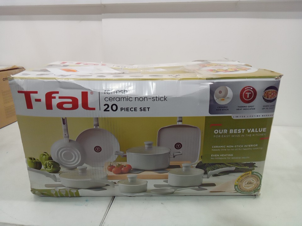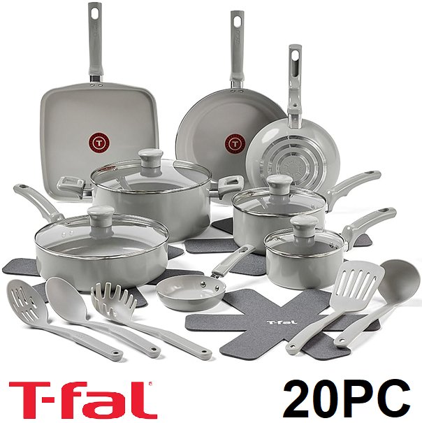 20pc t-fal refresh non-sticck cookware set - moon grey (model: C486SK64)