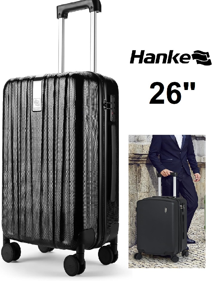Hanke Lightweight Hardside Carry On Luggage with 8 Spinner Silent Wheels - 26" - Black