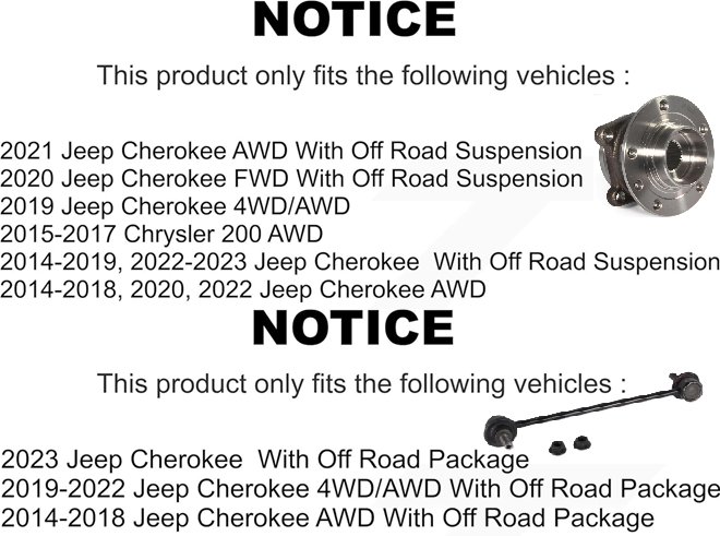 KUGEL HUB BEARING ASSEMBLIES and tor front suspension stabilizer kit FOR SELECT JEEP models (MODEL: 70-512513