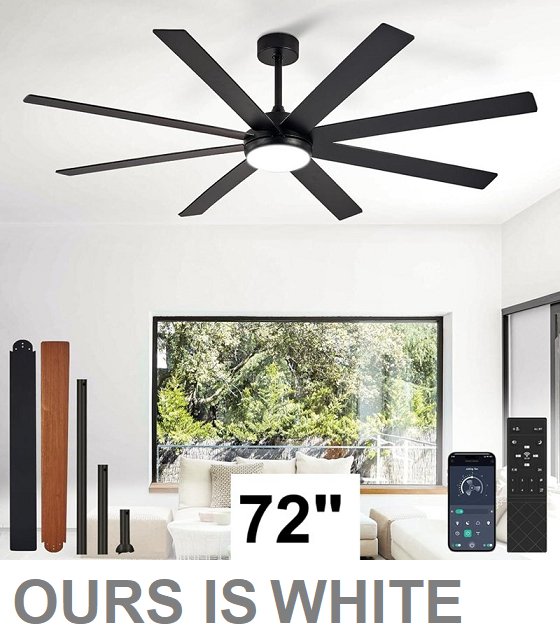 Depuley 8 blade 6 speed energy saving dimmable app compatible Ceiling fan and light - 72""- 3000K-6500K - white - (Model: WS-FPZ197-72C-wc)