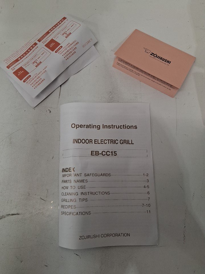 Zojirushi Indoor Electric Grill, Black (MODEL: EB-CC15)