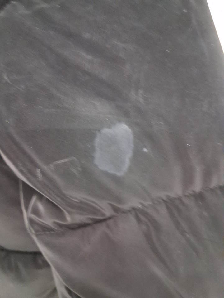 There is a small mark on one of the sleeves, but it should easily wash out. The coat otherwise appears new (see photos) Please note that there is some dust on the coat from being inspected in a warehouse environment