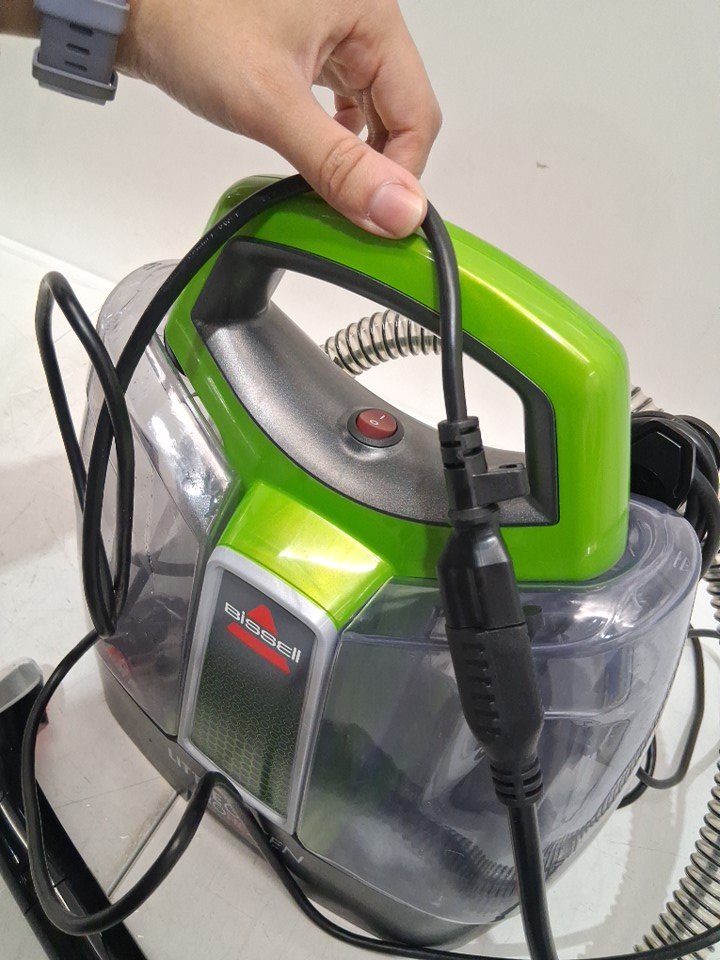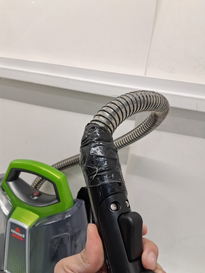 water inside tank from previous use, duct tape around hose holding attachment. Tested for power and function