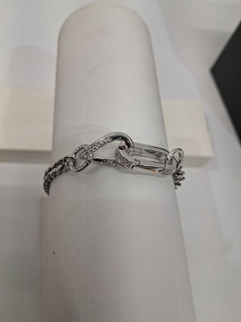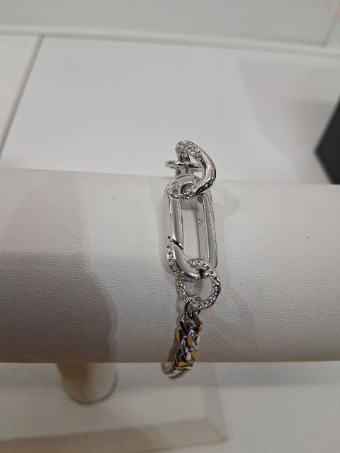 women's swarovski dextera pavé mixed links bracelet - 9"/5mm (xl) - white/rhodium plated - (model: 5642599).