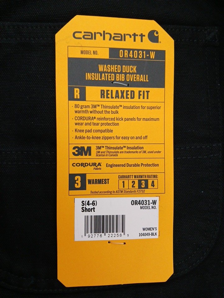 Women's Carhartt Relaxed Fit Washed Duck Insulated Bib Overalls - small short - BLACK (STYLE: OR4031-W)