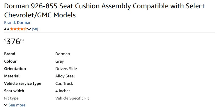 Dorman Seat Cushion Assembly - Compatible with Select Chevrolet/GMC Models - Grey (Model: 926-855)