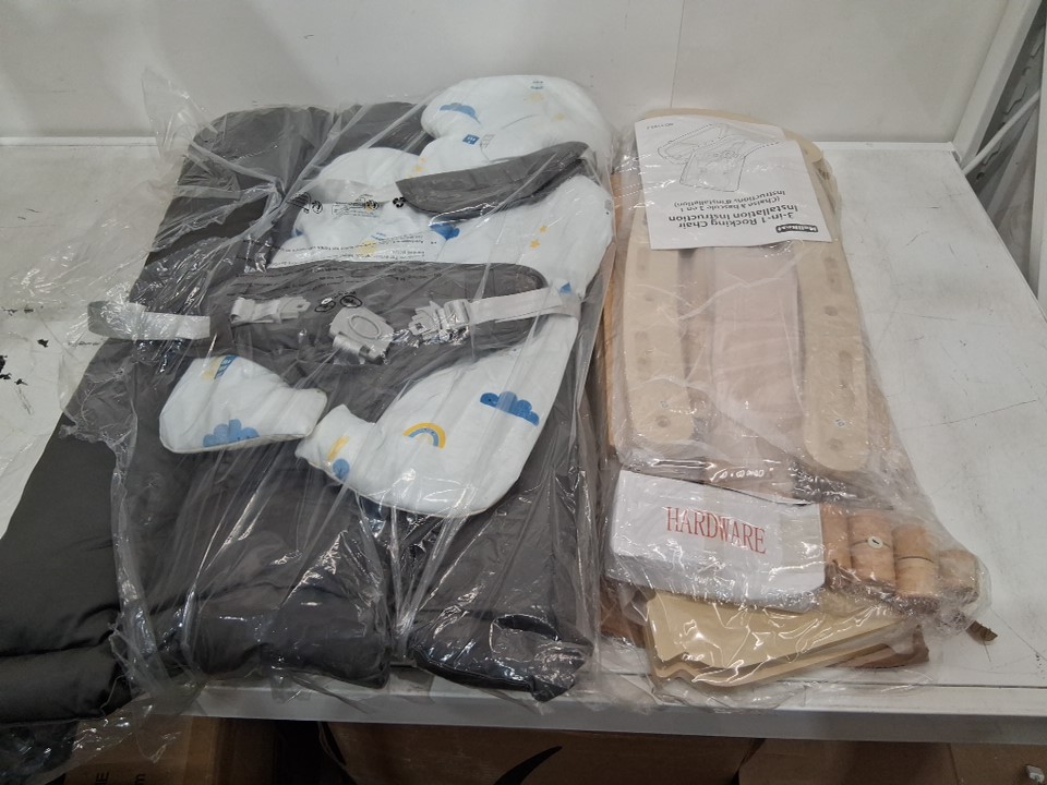 MALLBEST 3-IN-1 DOUBLE CUSHION adjustable wooden rocking chair - GRAY