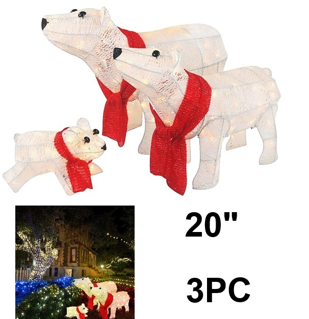 3pc Lighted Polar Bear Family All-Weather Christmas Decor - 20" - white (model: S105/3F-06-41A)