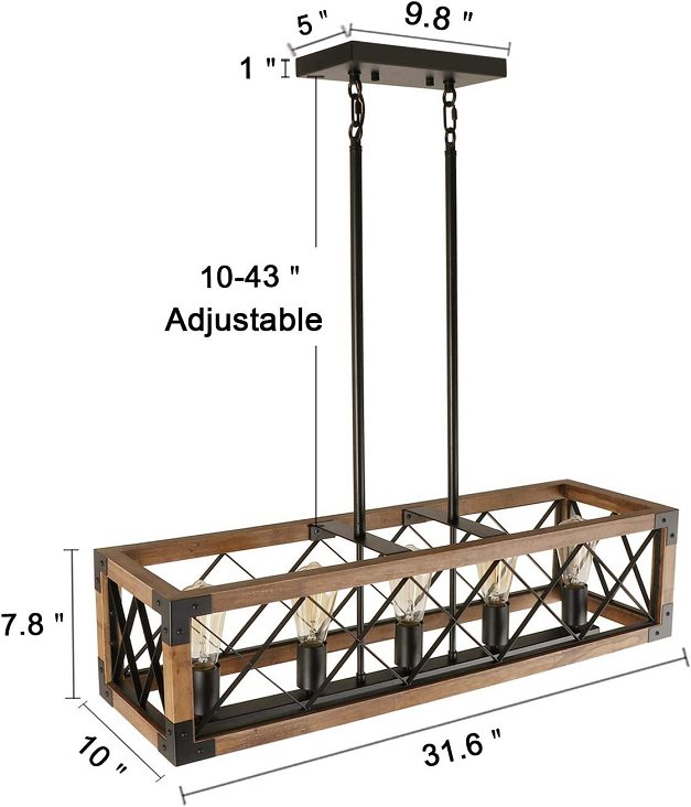 GILUTA RECTANGULAR 5-LIGHT FARMHOUSE CHANDELIER, 60W - 31.6" LENGTH (MODEL: C0080)