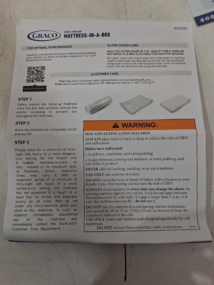 GRACO PREMIUM FOAM MATTRESS-IN-A-BOX, CRIB & TODDLER - FITS ALL STANDARAD SIZED CRIBS - WHITE (model: 06710-400-oc)