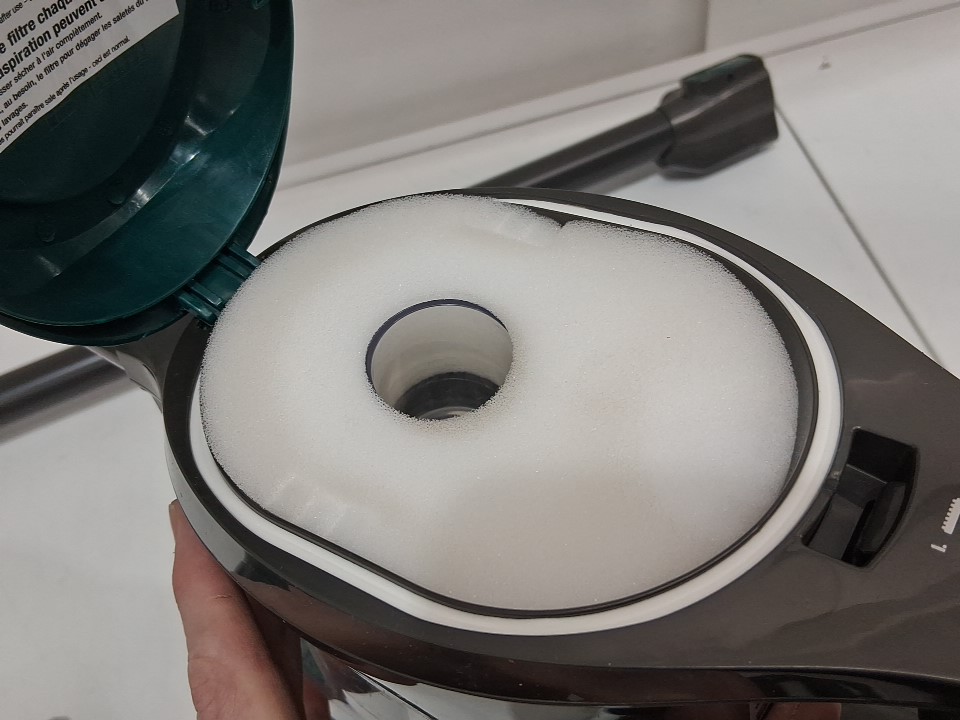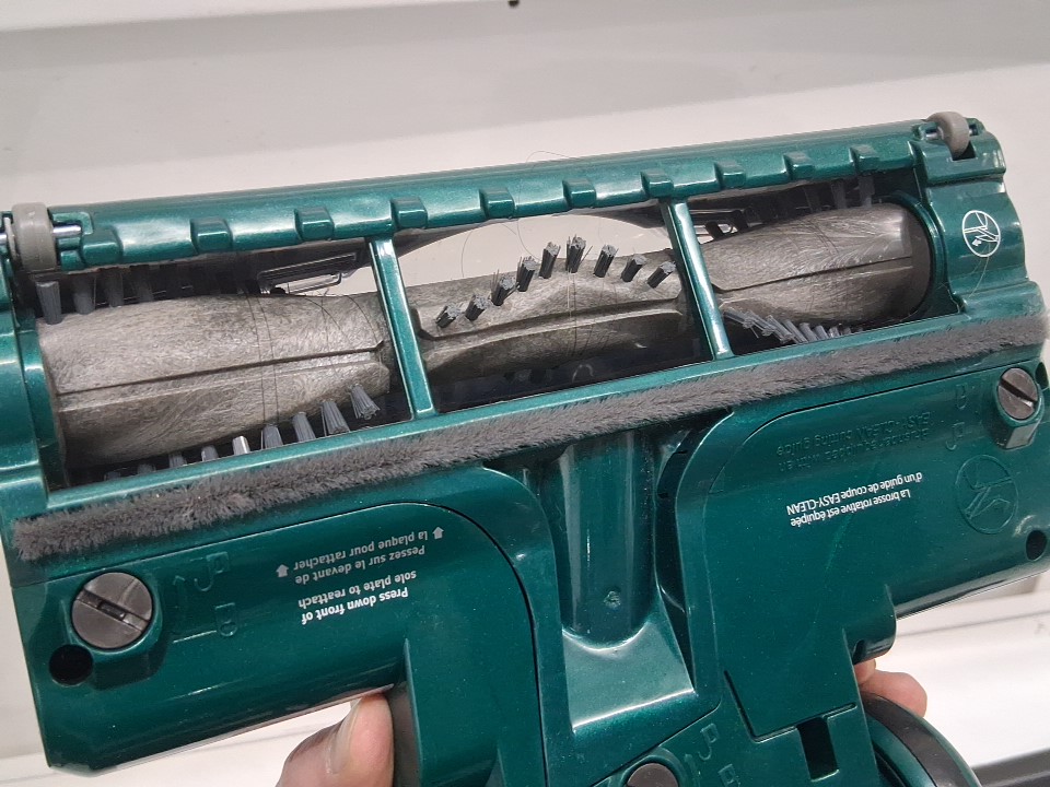 **Tested for power and suction.** Item has minor dust in the main container, a couple hairs around the main roller, slight discolouration on filter from previous gentle use, see photos.