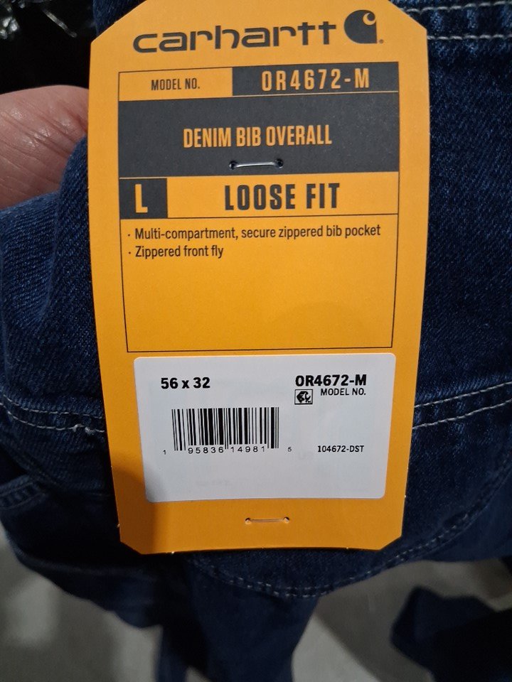 men's carhartt loose fit denim bib overalls - 56w x 32l - darkstone (model: or4672-m)