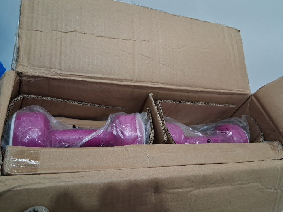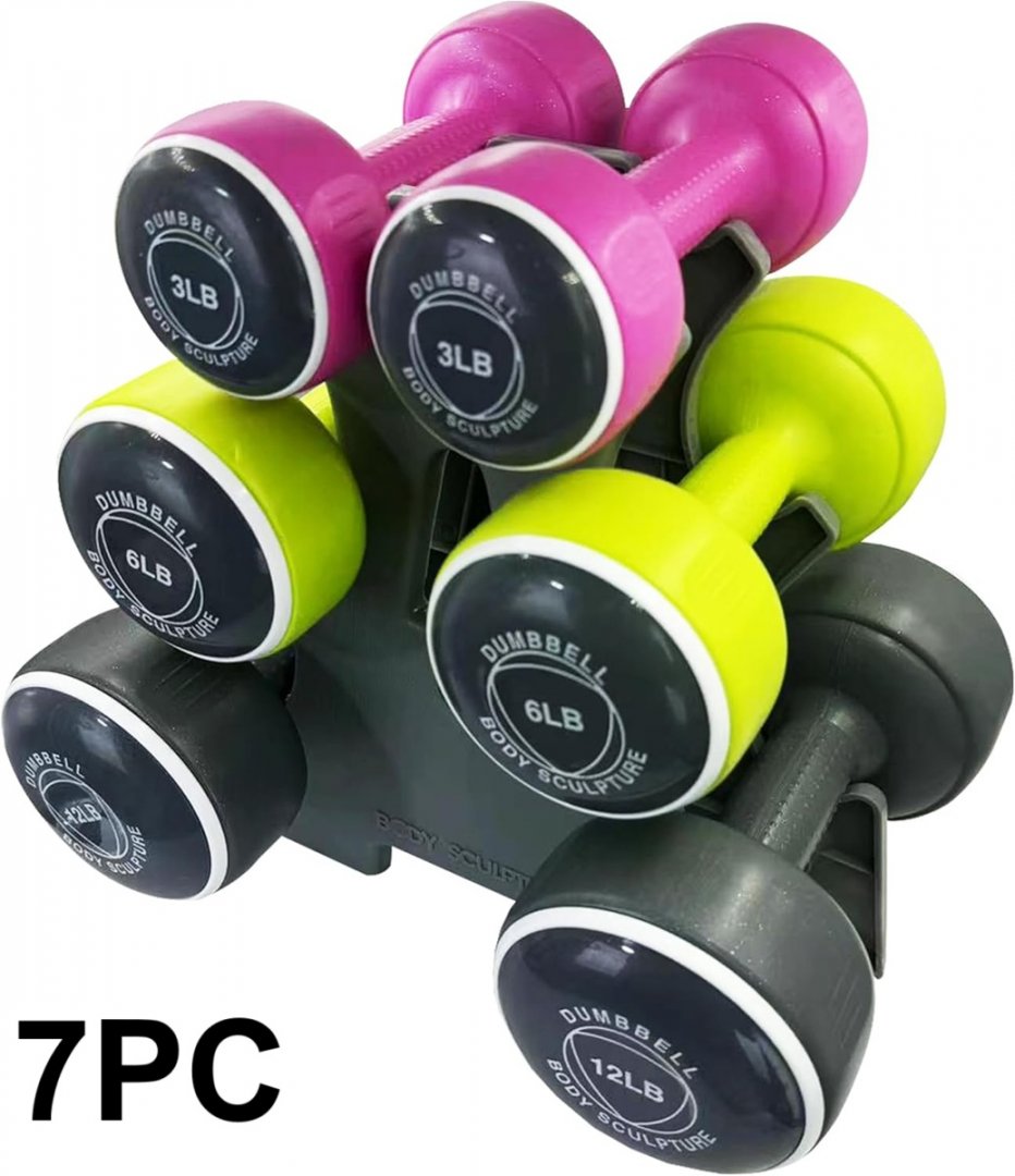 7pc Body Sculpture hand weights DUmbbell set - 3lbs/6lbs/1lbs with stand - pink/grey/green