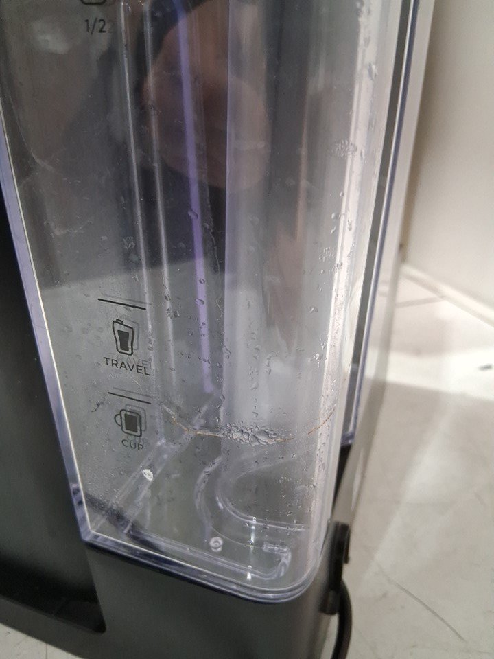 please note the item has remaining water and markings from previous use. the water tank has a crack in it, but it can be replaced. tested for power. see photos.
